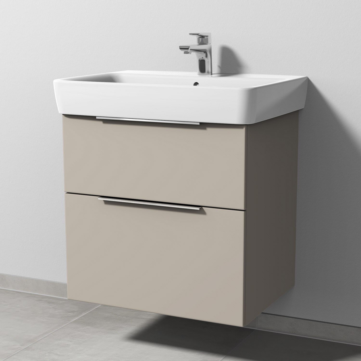 Sanipa 3way Waschtischunterbau für Keramik-Waschtisch Renova Plan 65 cm, 2 Auszüge mit Aufsatzgriff