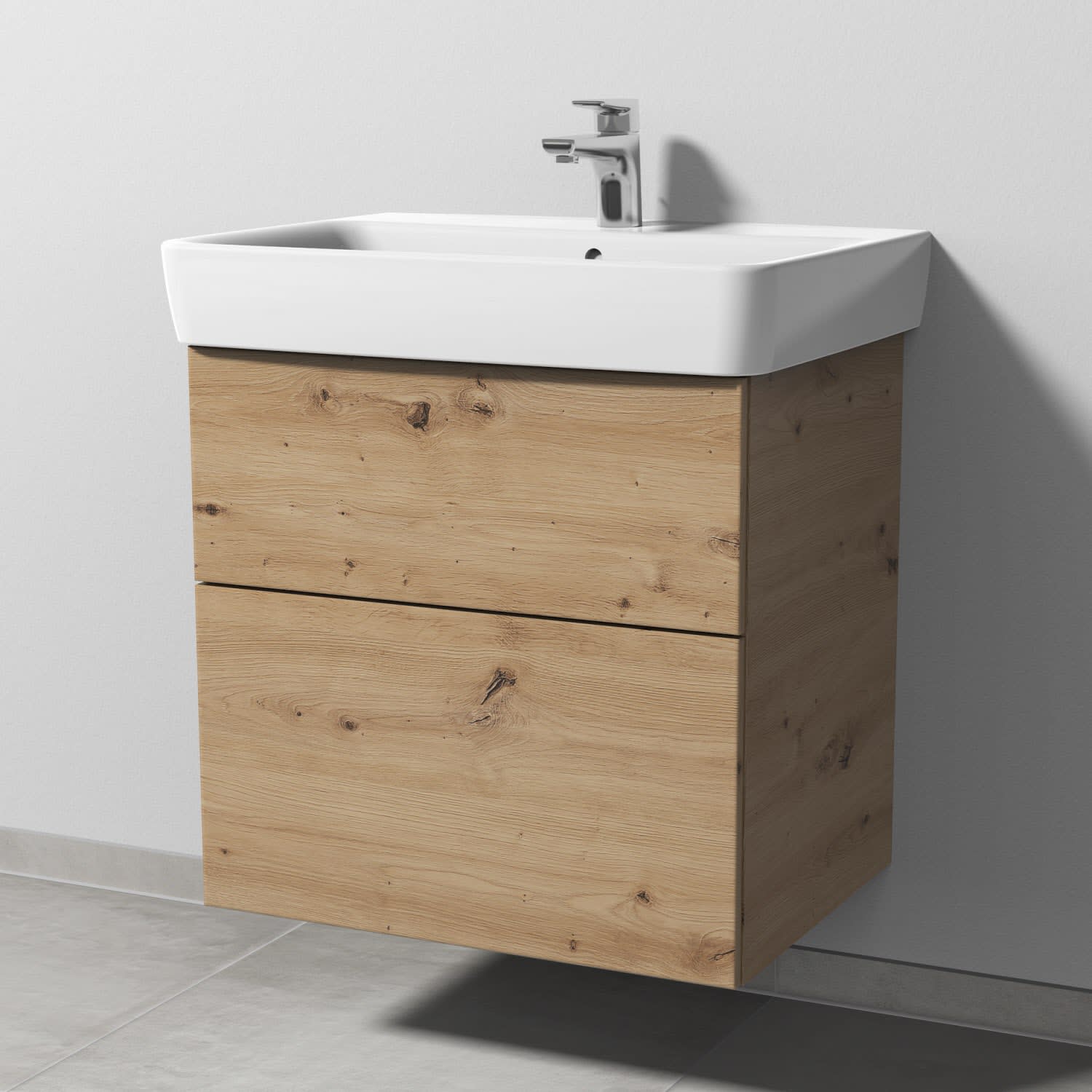 Sanipa 3way Waschtischunterbau für Keramik-Waschtisch Renova Plan 65 cm, 2 Auszüge mit Push to open