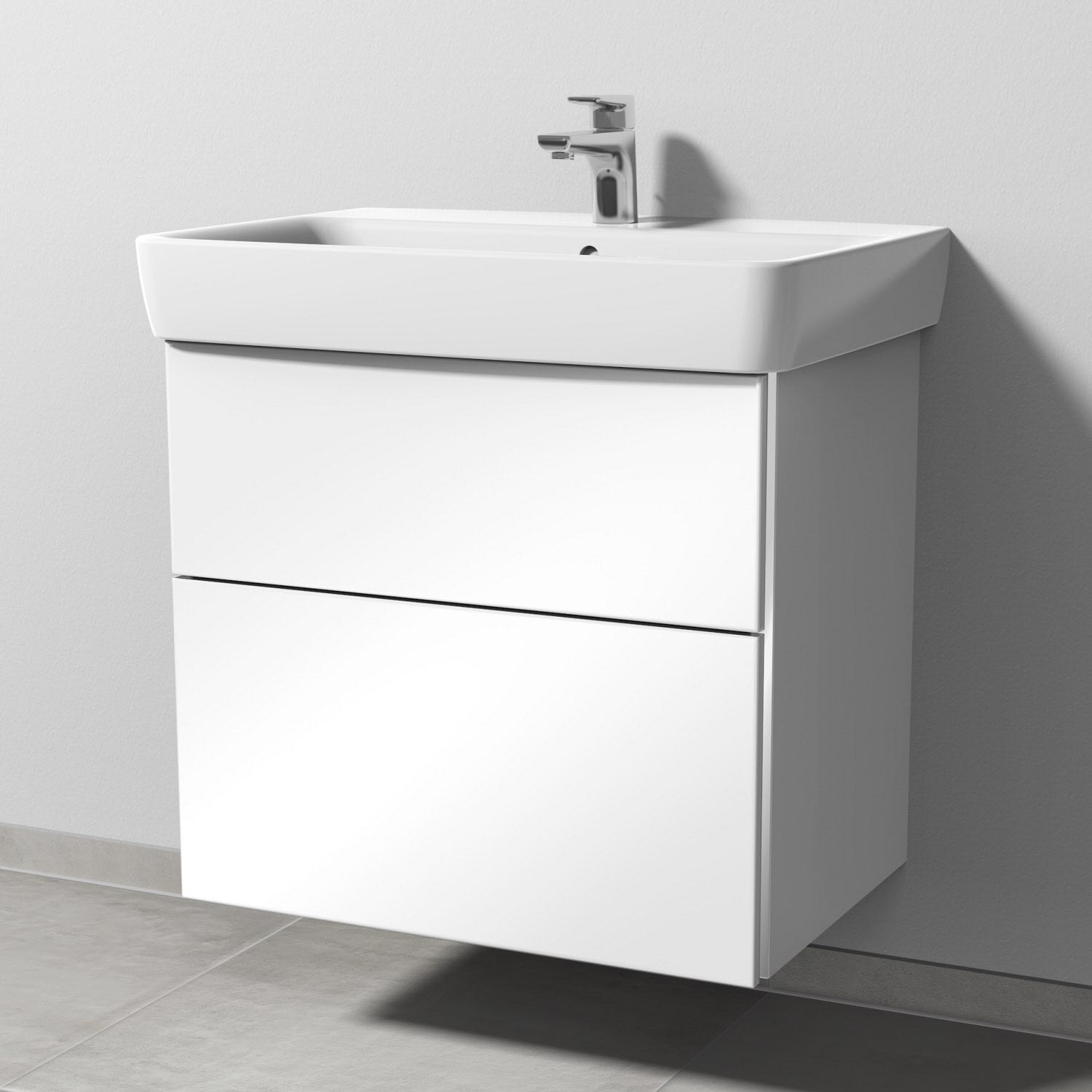 Sanipa 3way Waschtischunterbau für Keramik-Waschtisch Renova Plan 70 cm, 2 Auszüge mit Griffleisten