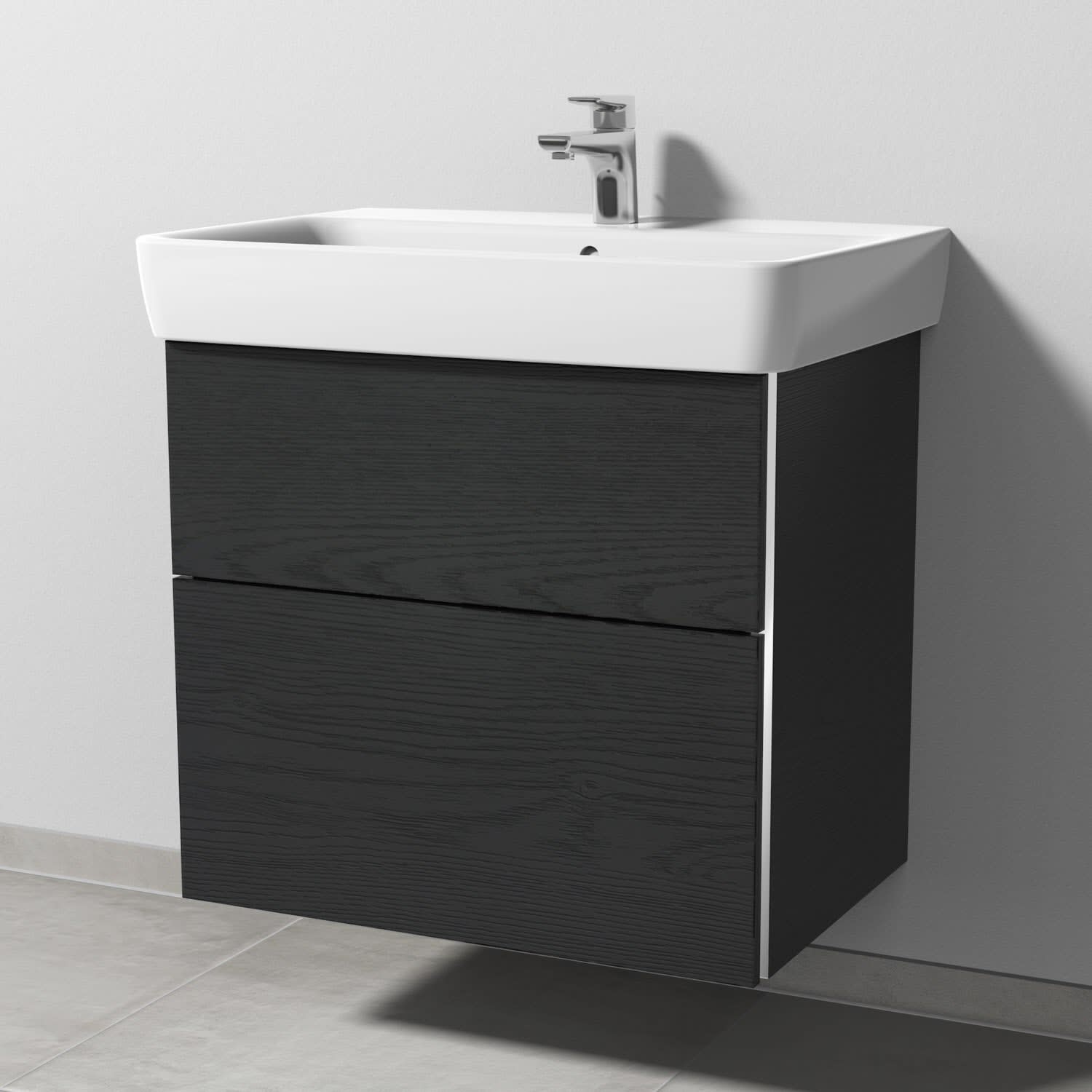 Sanipa 3way Waschtischunterbau für Keramik-Waschtisch Renova Plan 70 cm, 2 Auszüge mit Griffleisten