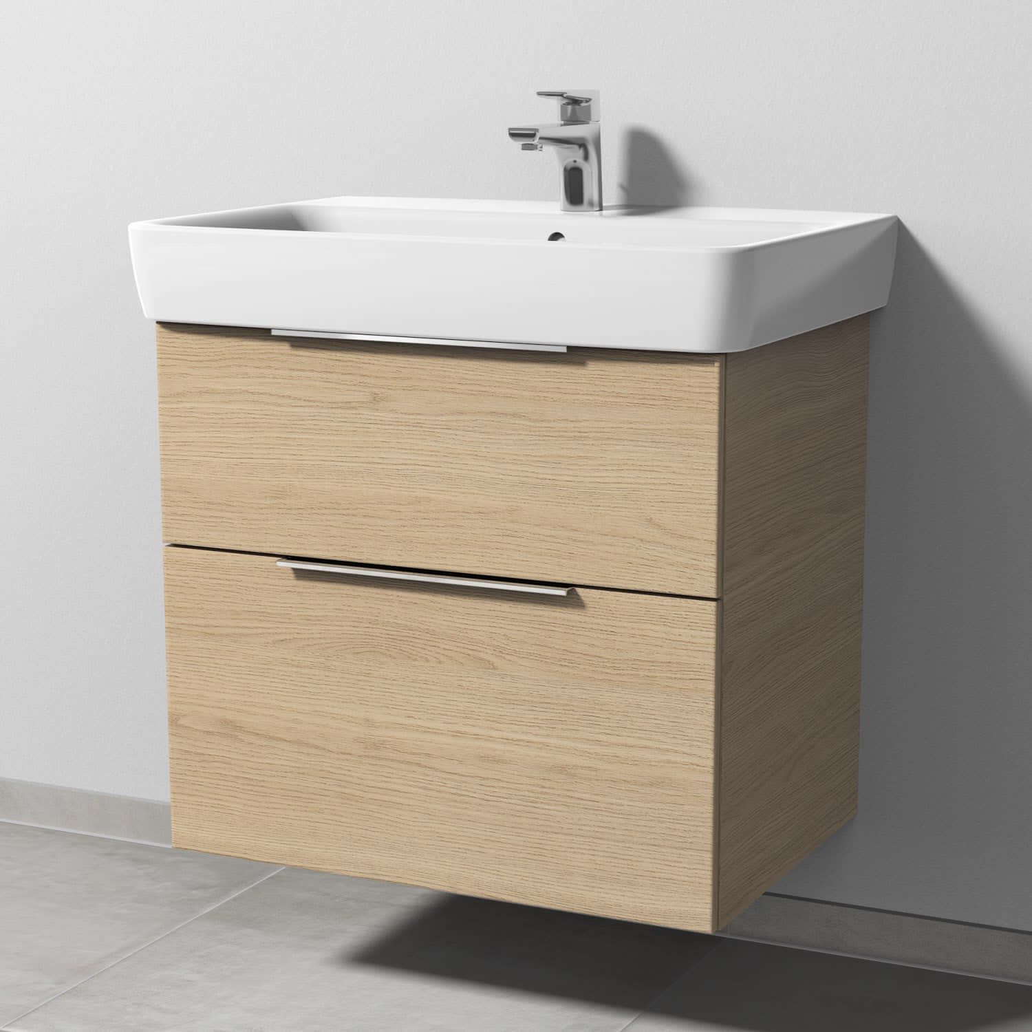 Sanipa 3way Waschtischunterbau für Keramik-Waschtisch Renova Plan 70 cm, 2 Auszüge mit Aufsatzgriff