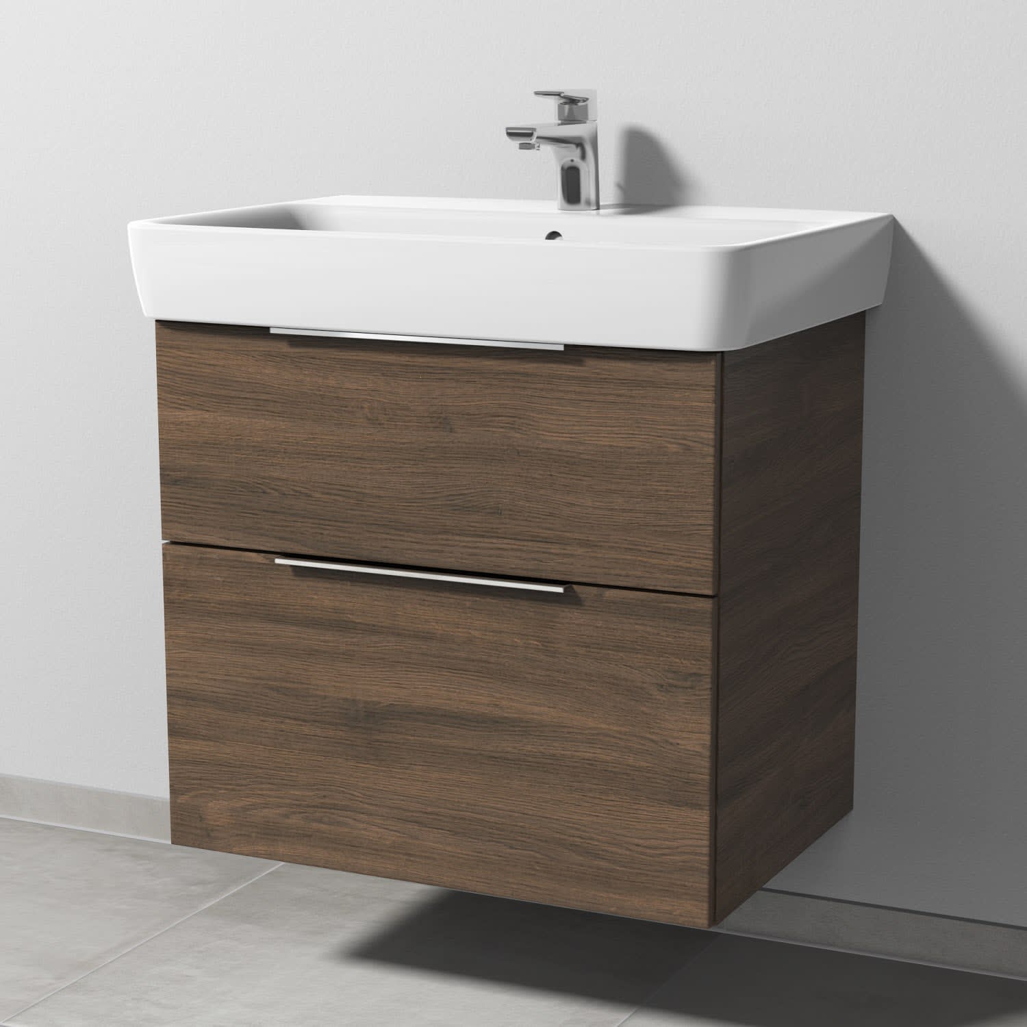 Sanipa 3way Waschtischunterbau für Keramik-Waschtisch Renova Plan 70 cm, 2 Auszüge mit Aufsatzgriff