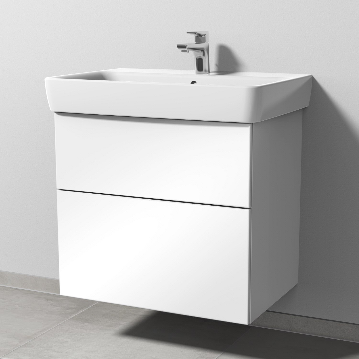 Sanipa 3way Waschtischunterbau für Keramik-Waschtisch Renova Plan 70 cm, 2 Auszüge mit Push to open