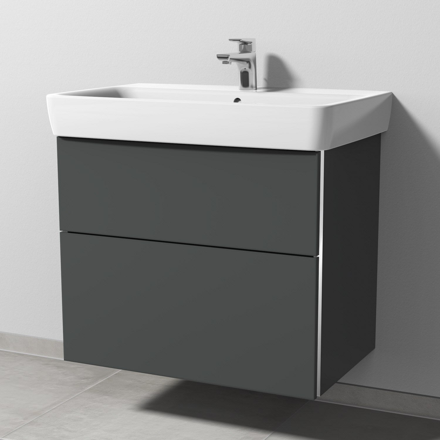 Sanipa 3way Waschtischunterbau für Keramik-Waschtisch Renova Plan 75 cm, 2 Auszüge mit Griffleisten