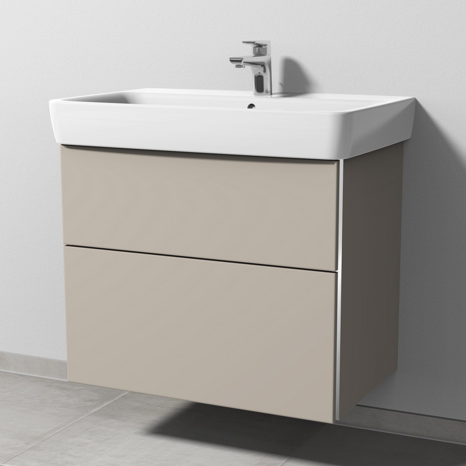 Sanipa 3way Waschtischunterbau für Keramik-Waschtisch Renova Plan 75 cm, 2 Auszüge mit Griffleisten