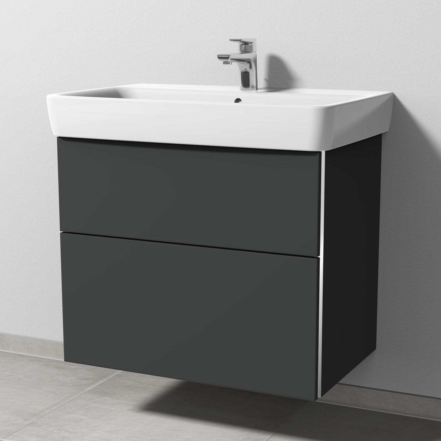 Sanipa 3way Waschtischunterbau für Keramik-Waschtisch Renova Plan 75 cm, 2 Auszüge mit Griffleisten