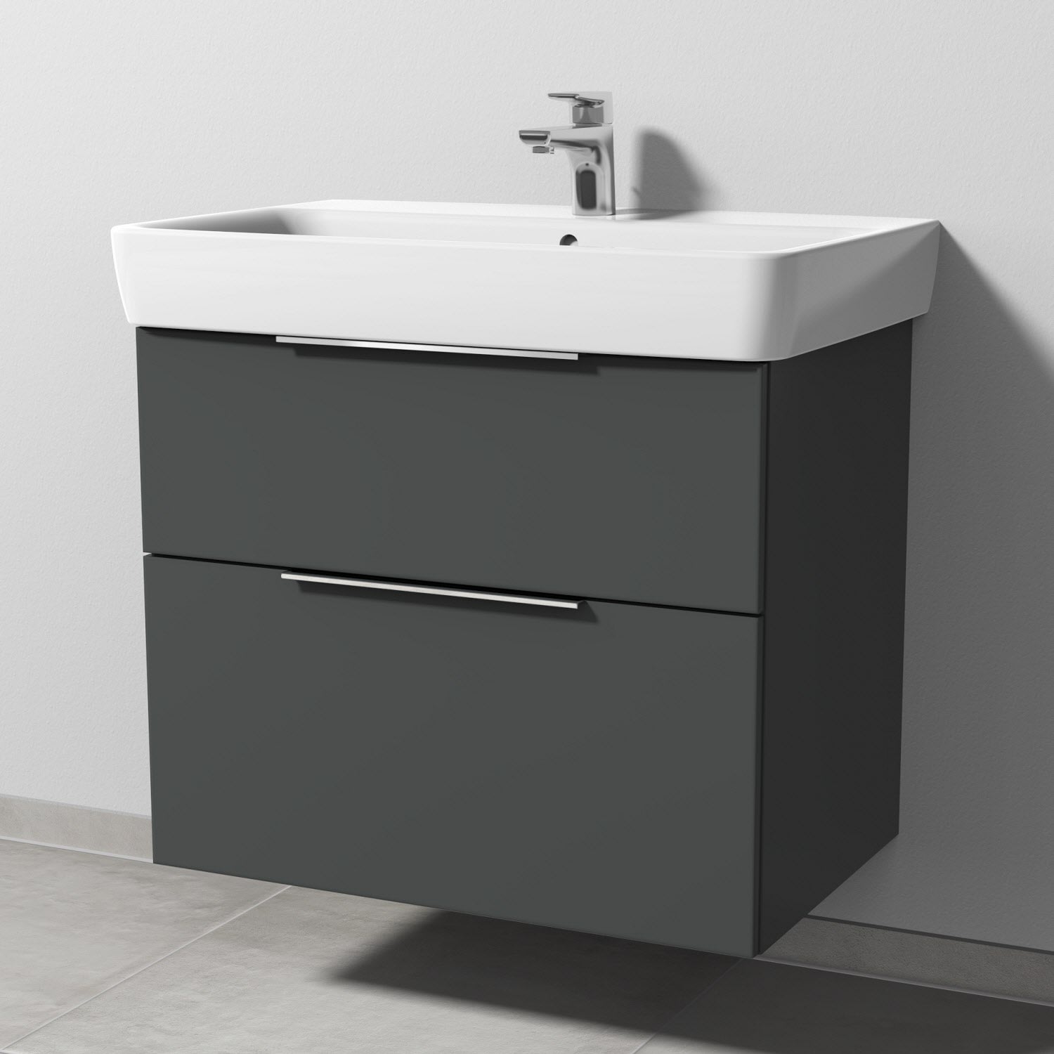 Sanipa 3way Waschtischunterbau für Keramik-Waschtisch Renova Plan 75 cm, 2 Auszüge mit Aufsatzgriff