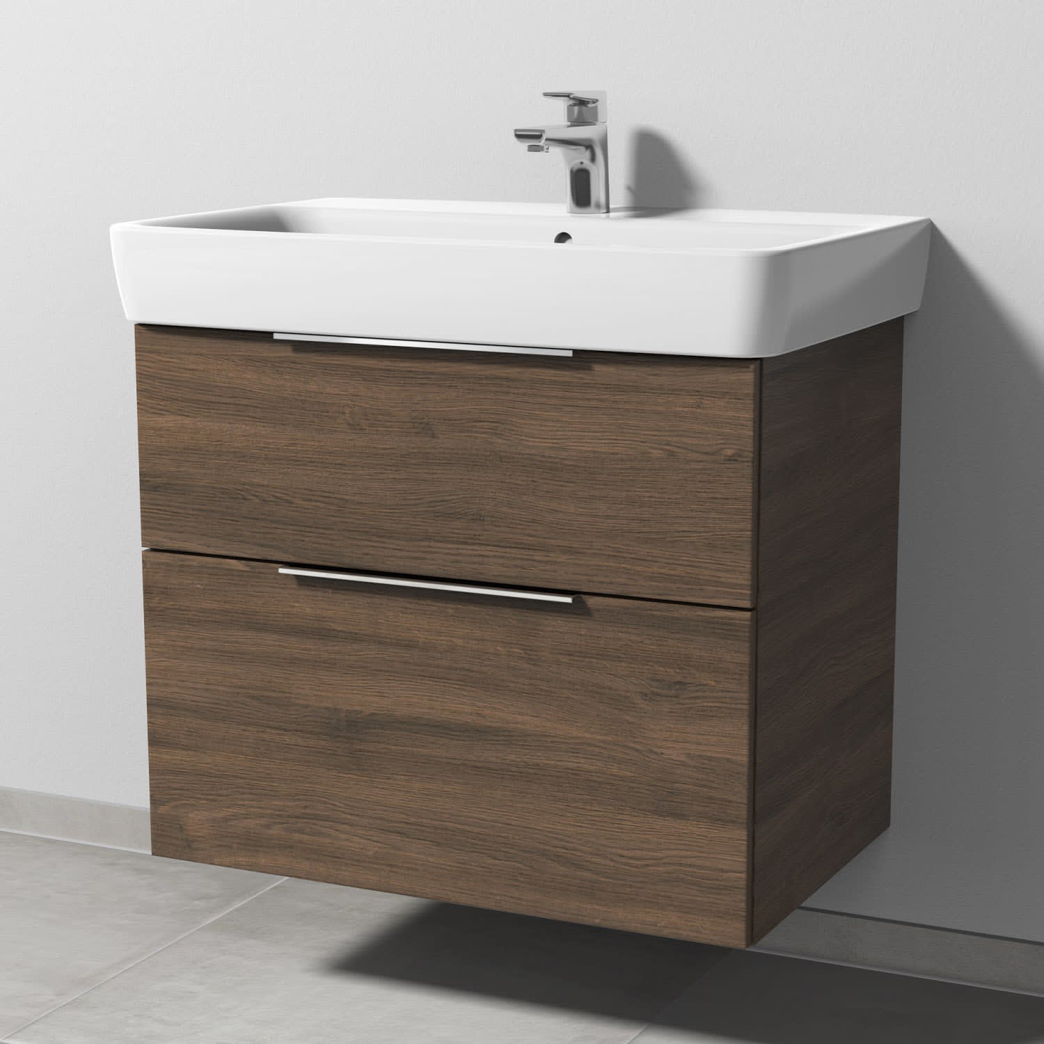 Sanipa 3way Waschtischunterbau für Keramik-Waschtisch Renova Plan 75 cm, 2 Auszüge mit Aufsatzgriff