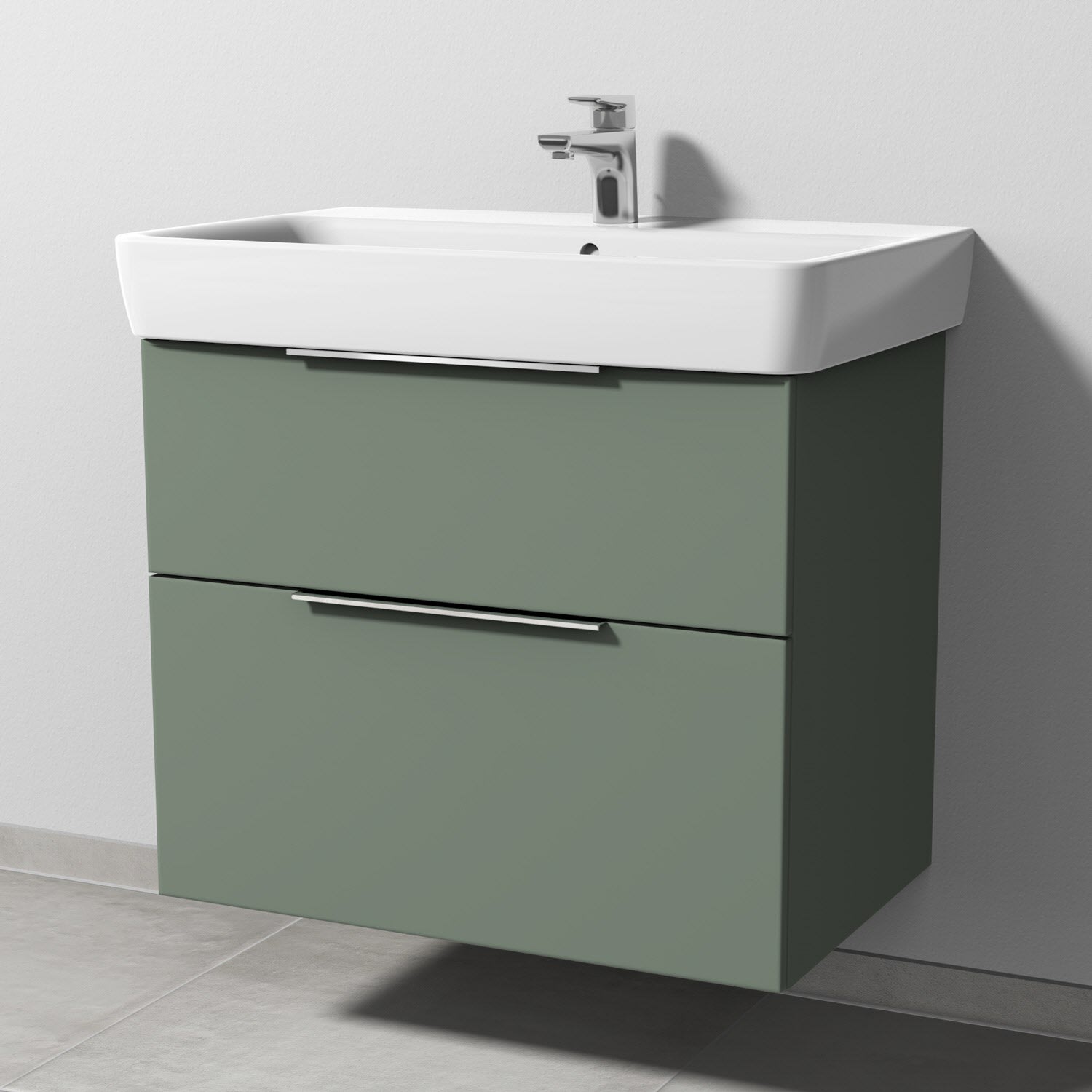 Sanipa 3way Waschtischunterbau für Keramik-Waschtisch Renova Plan 75 cm, 2 Auszüge mit Aufsatzgriff