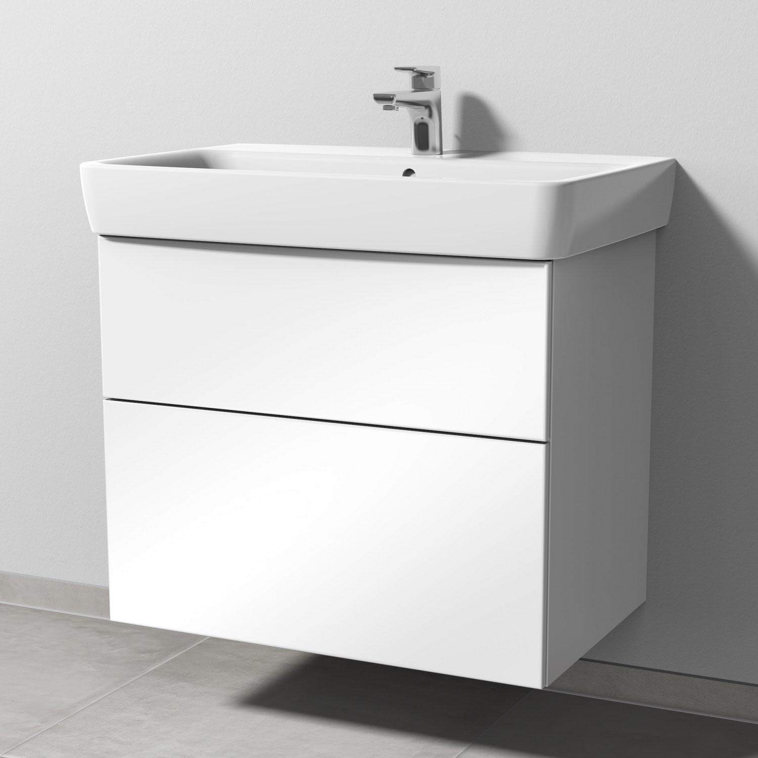 Sanipa 3way Waschtischunterbau für Keramik-Waschtisch Renova Plan 75 cm, 2 Auszüge mit Push to open