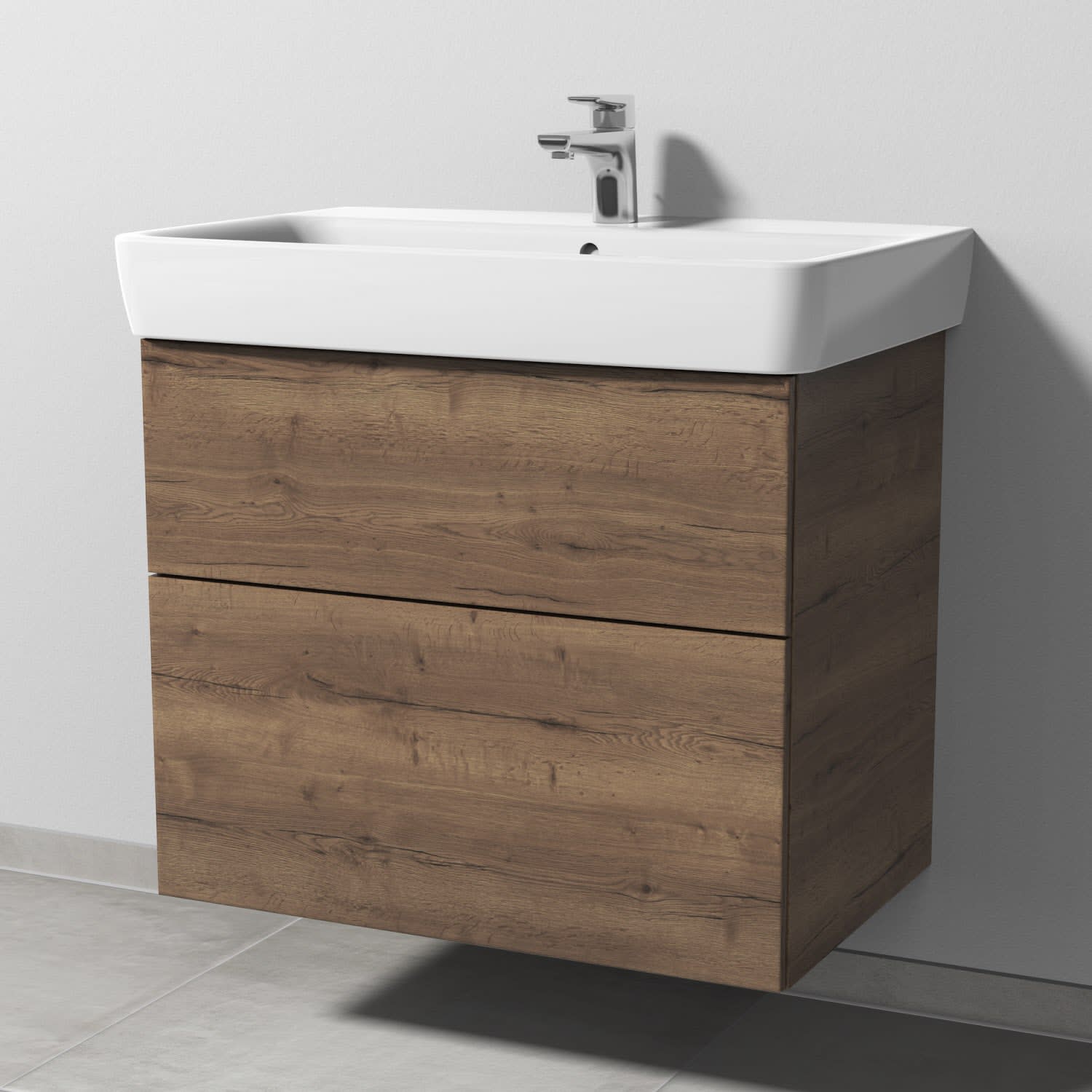 Sanipa 3way Waschtischunterbau für Keramik-Waschtisch Renova Plan 75 cm, 2 Auszüge mit Push to open