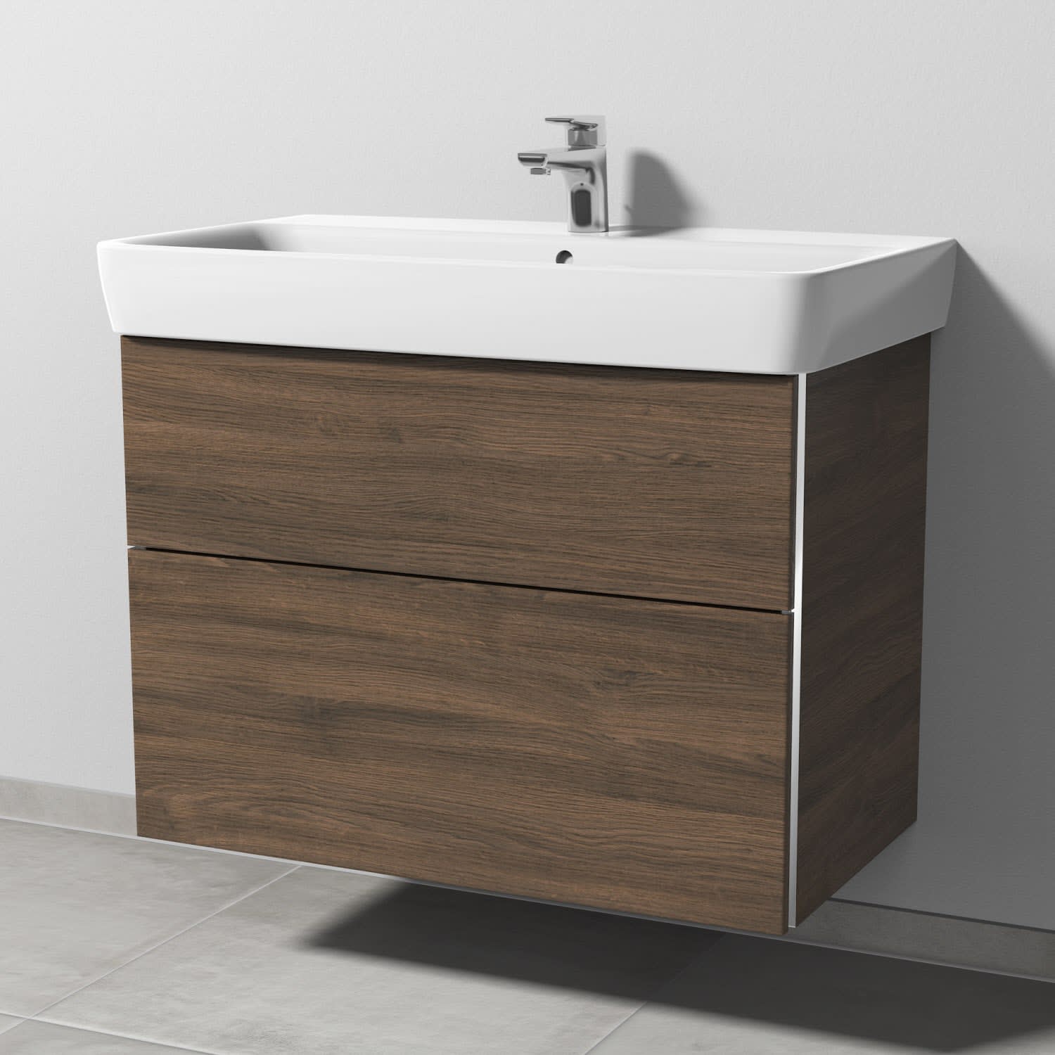 Sanipa 3way Waschtischunterbau für Keramik-Waschtisch Renova Plan 85 cm, 2 Auszüge mit Griffleisten