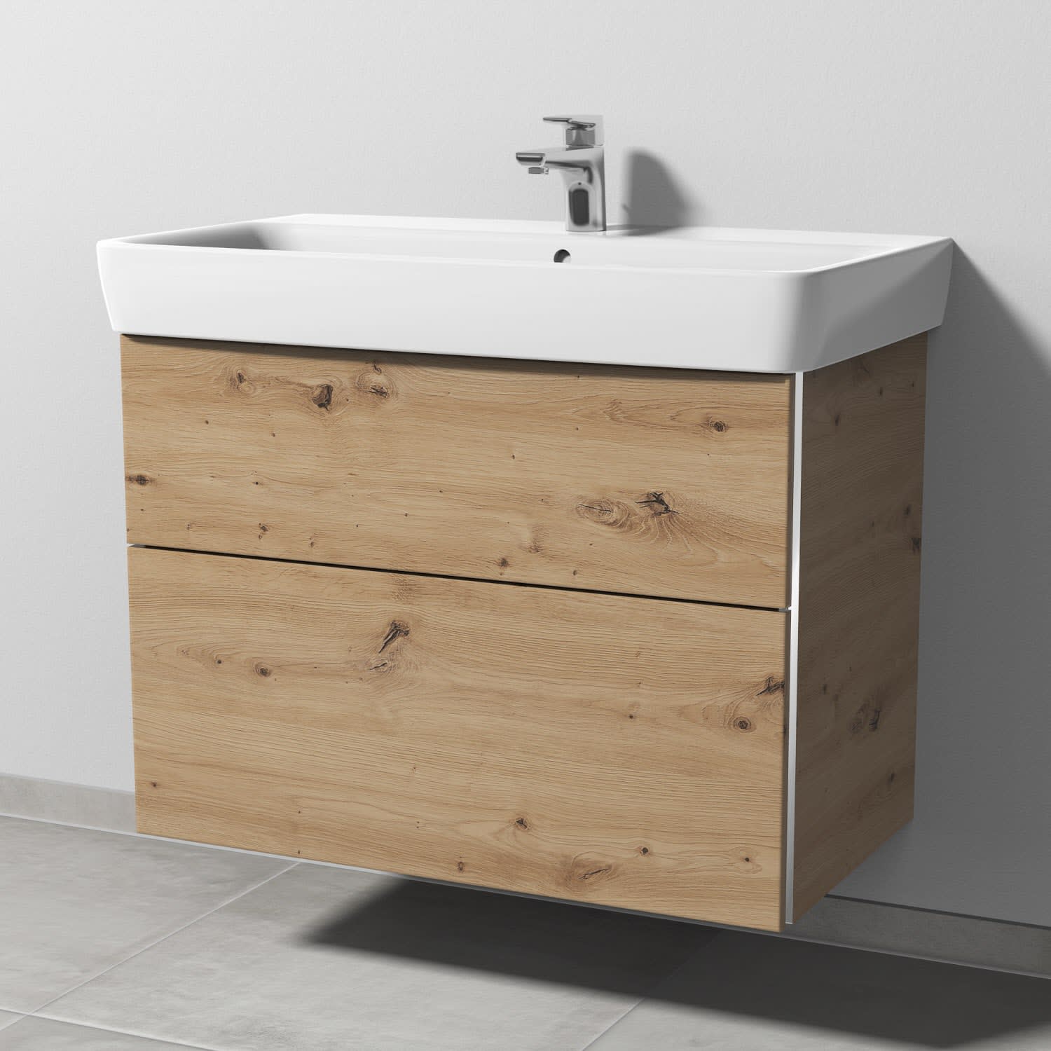 Sanipa 3way Waschtischunterbau für Keramik-Waschtisch Renova Plan 85 cm, 2 Auszüge mit Griffleisten
