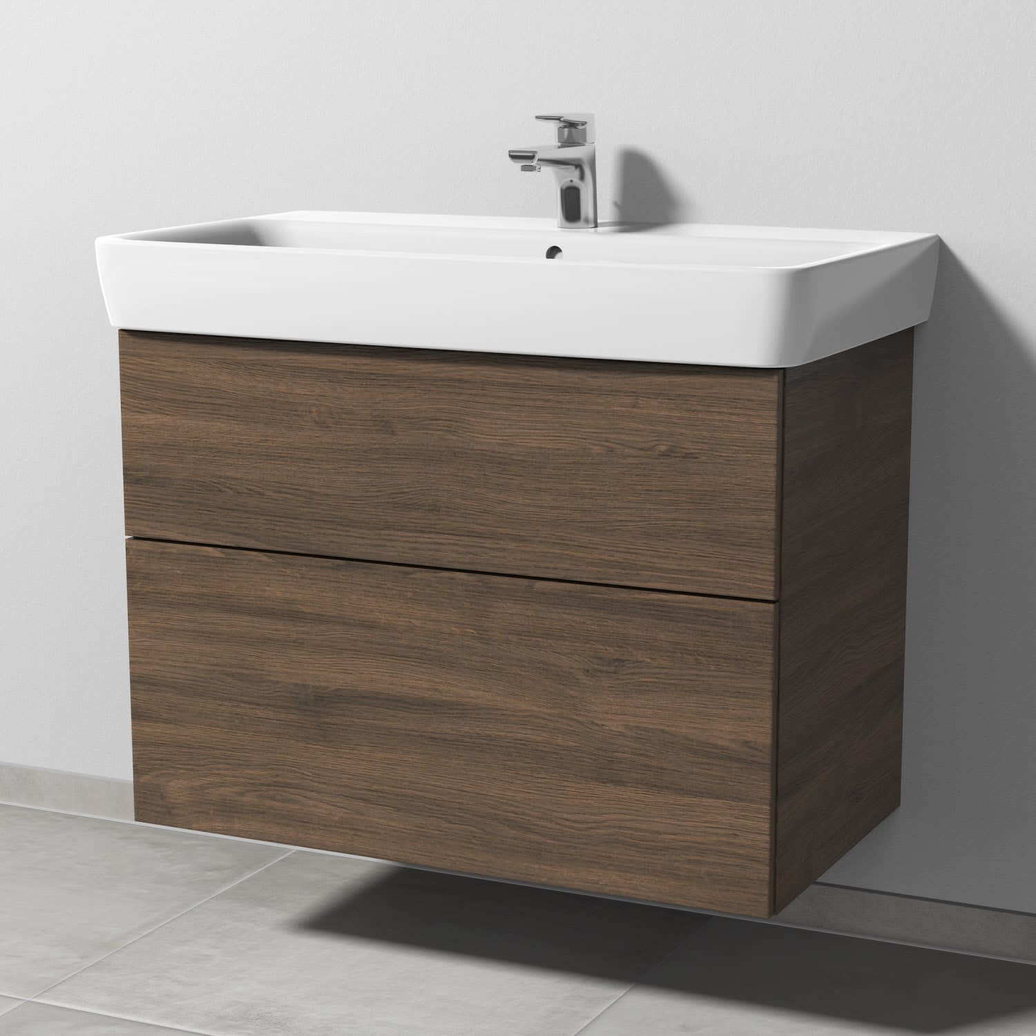 Sanipa 3way Waschtischunterbau für Keramik-Waschtisch Renova Plan 85 cm, 2 Auszüge mit Push to open