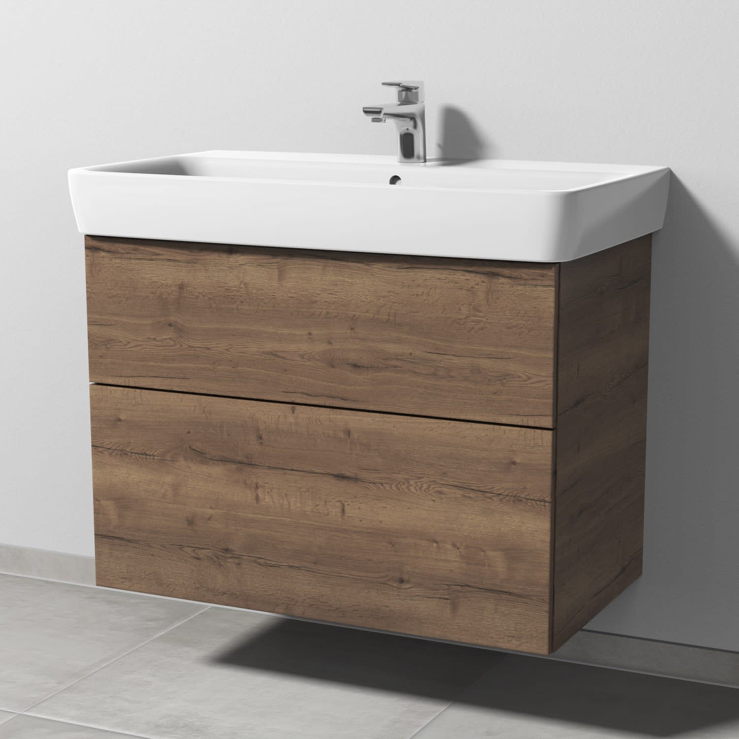 Sanipa 3way Waschtischunterbau für Keramik-Waschtisch Renova Plan 85 cm, 2 Auszüge mit Push to open