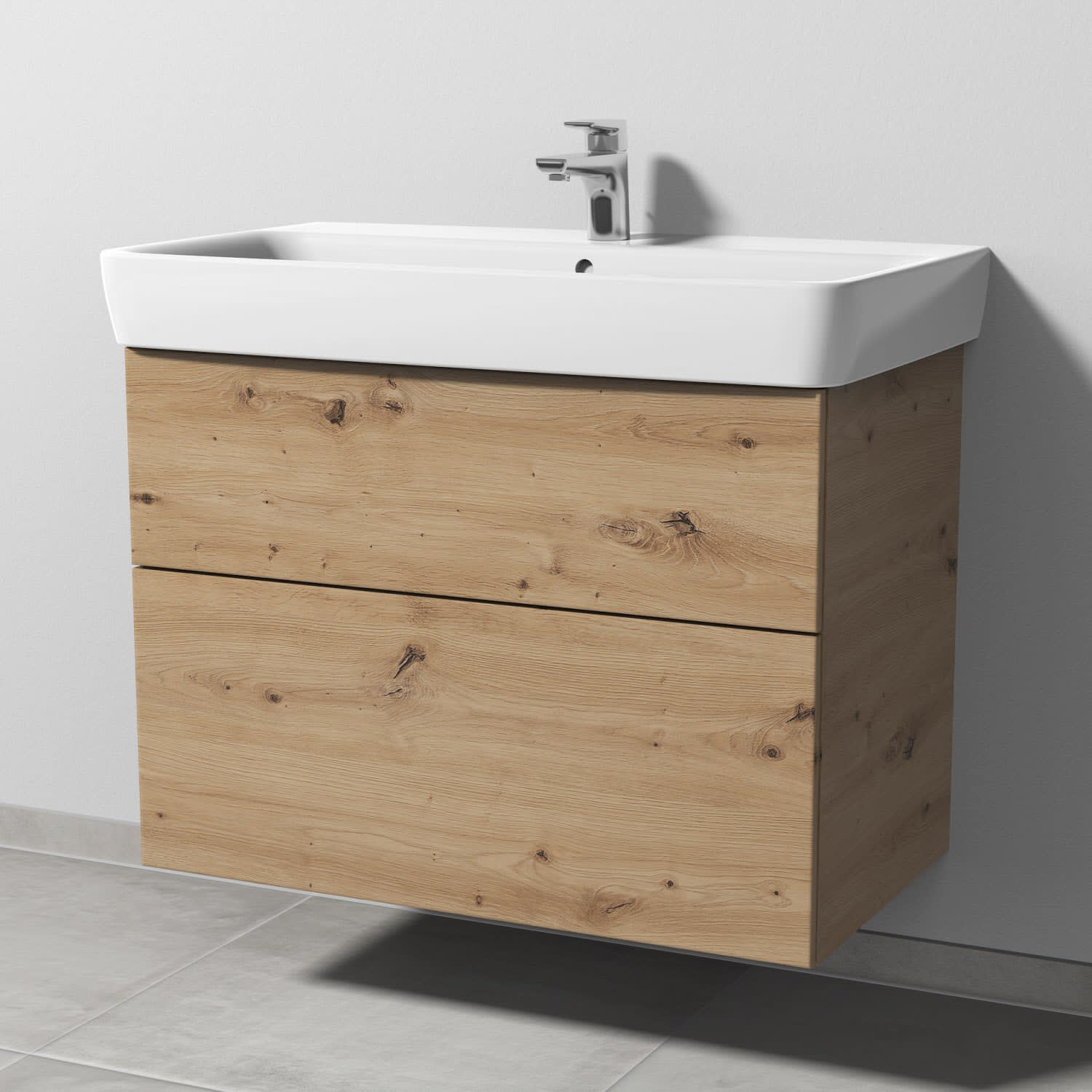 Sanipa 3way Waschtischunterbau für Keramik-Waschtisch Renova Plan 85 cm, 2 Auszüge mit Push to open
