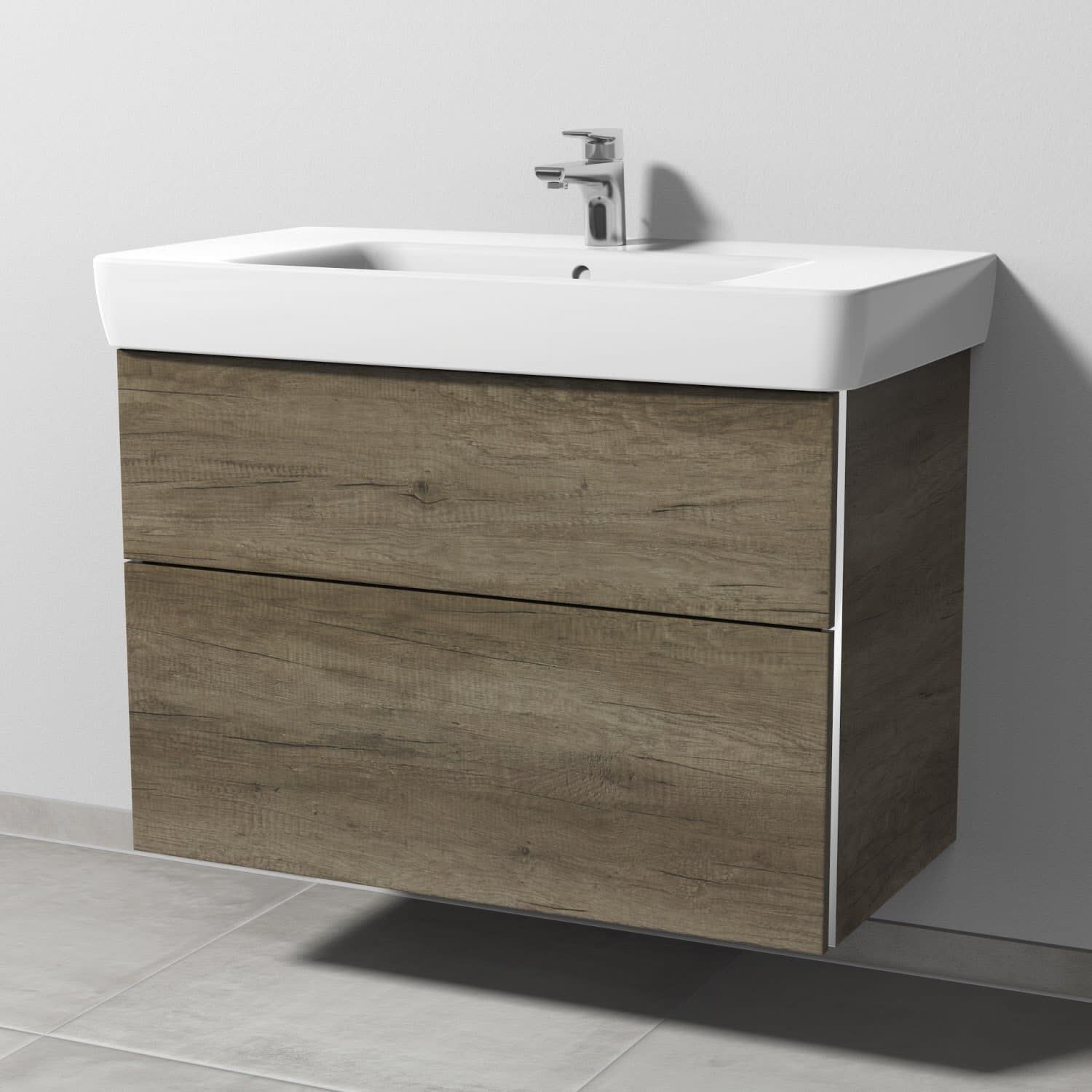 Sanipa 3way Waschtischunterbau für Keramik-Waschtisch Renova Plan 90 cm, 2 Auszüge mit Griffleisten