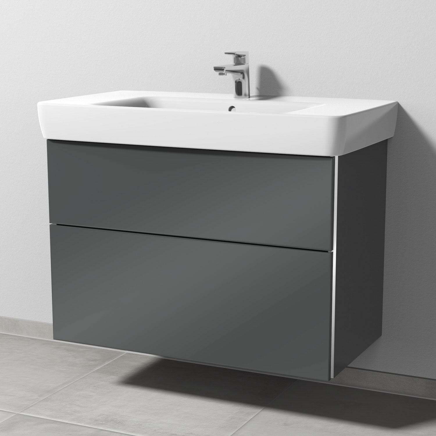 Sanipa 3way Waschtischunterbau für Keramik-Waschtisch Renova Plan 90 cm, 2 Auszüge mit Griffleisten