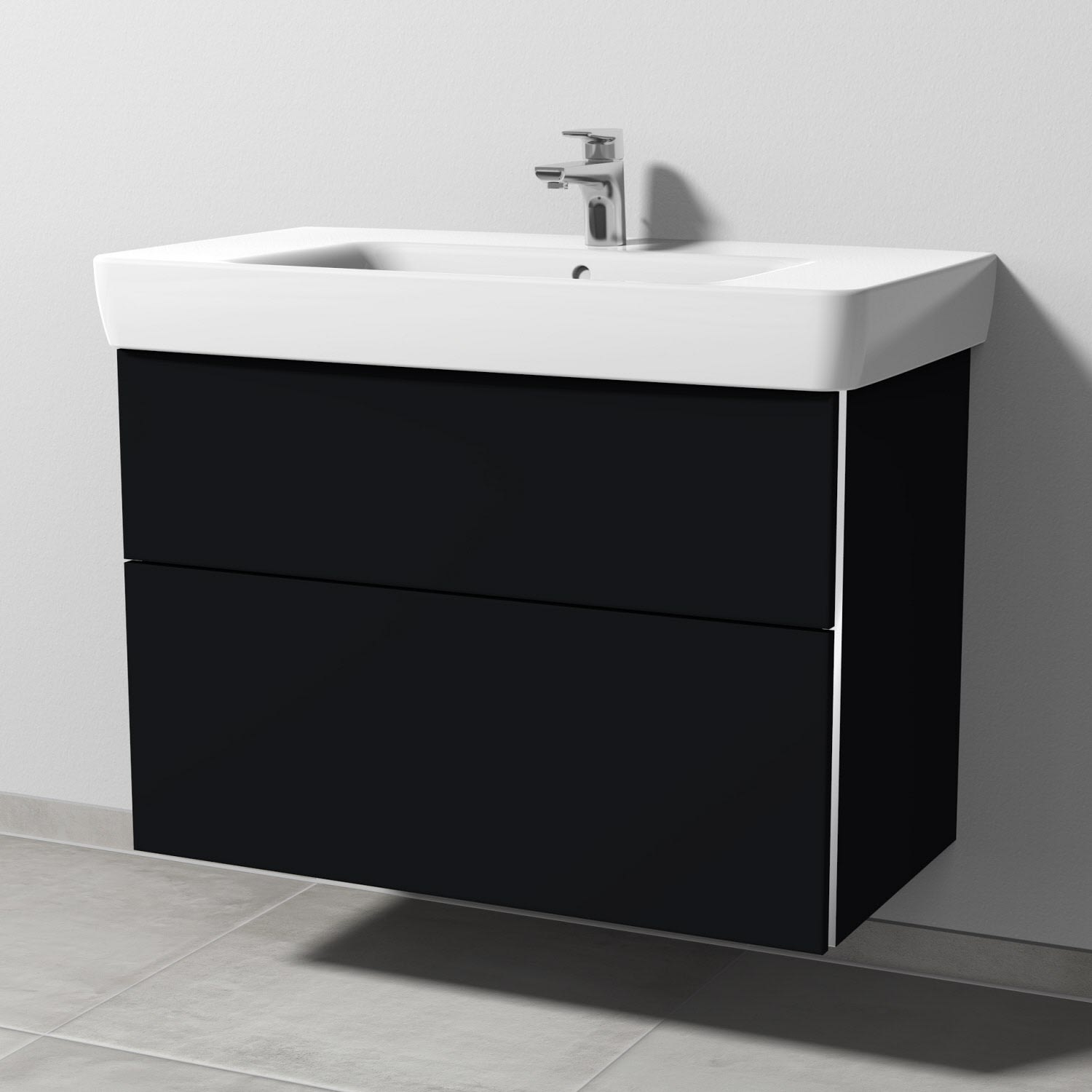 Sanipa 3way Waschtischunterbau für Keramik-Waschtisch Renova Plan 90 cm, 2 Auszüge mit Griffleisten