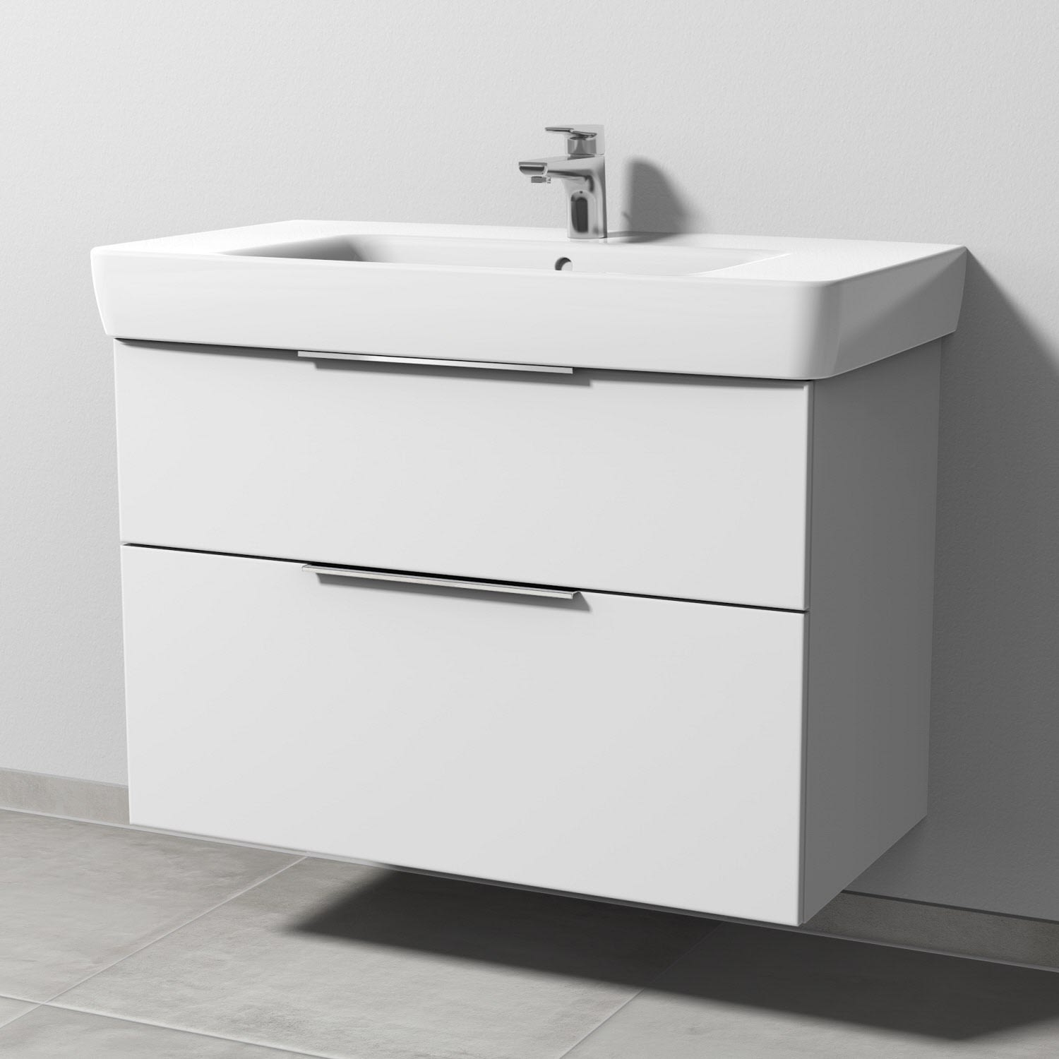Sanipa 3way Waschtischunterbau für Keramik-Waschtisch Renova Plan 90 cm, 2 Auszüge mit Aufsatzgriff