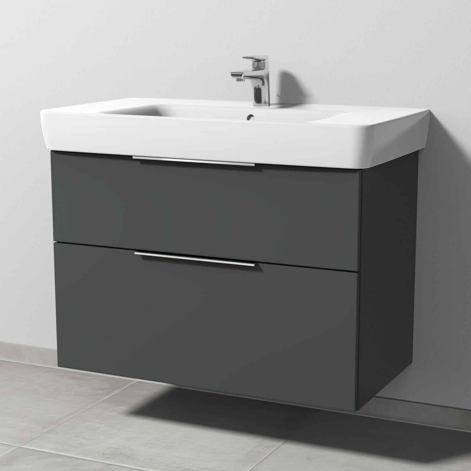 Sanipa 3way Waschtischunterbau für Keramik-Waschtisch Renova Plan 90 cm, 2 Auszüge mit Aufsatzgriff