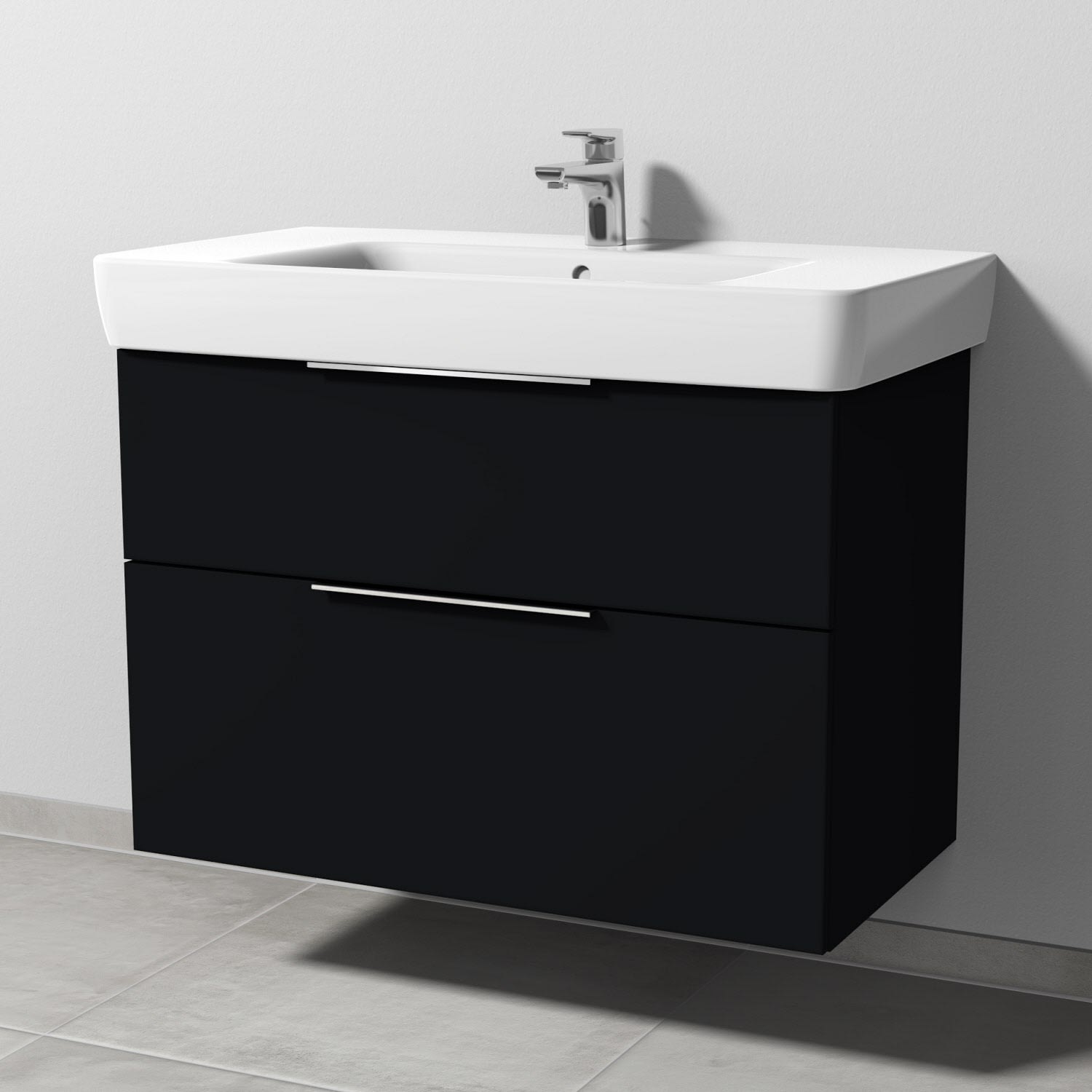 Sanipa 3way Waschtischunterbau für Keramik-Waschtisch Renova Plan 90 cm, 2 Auszüge mit Aufsatzgriff