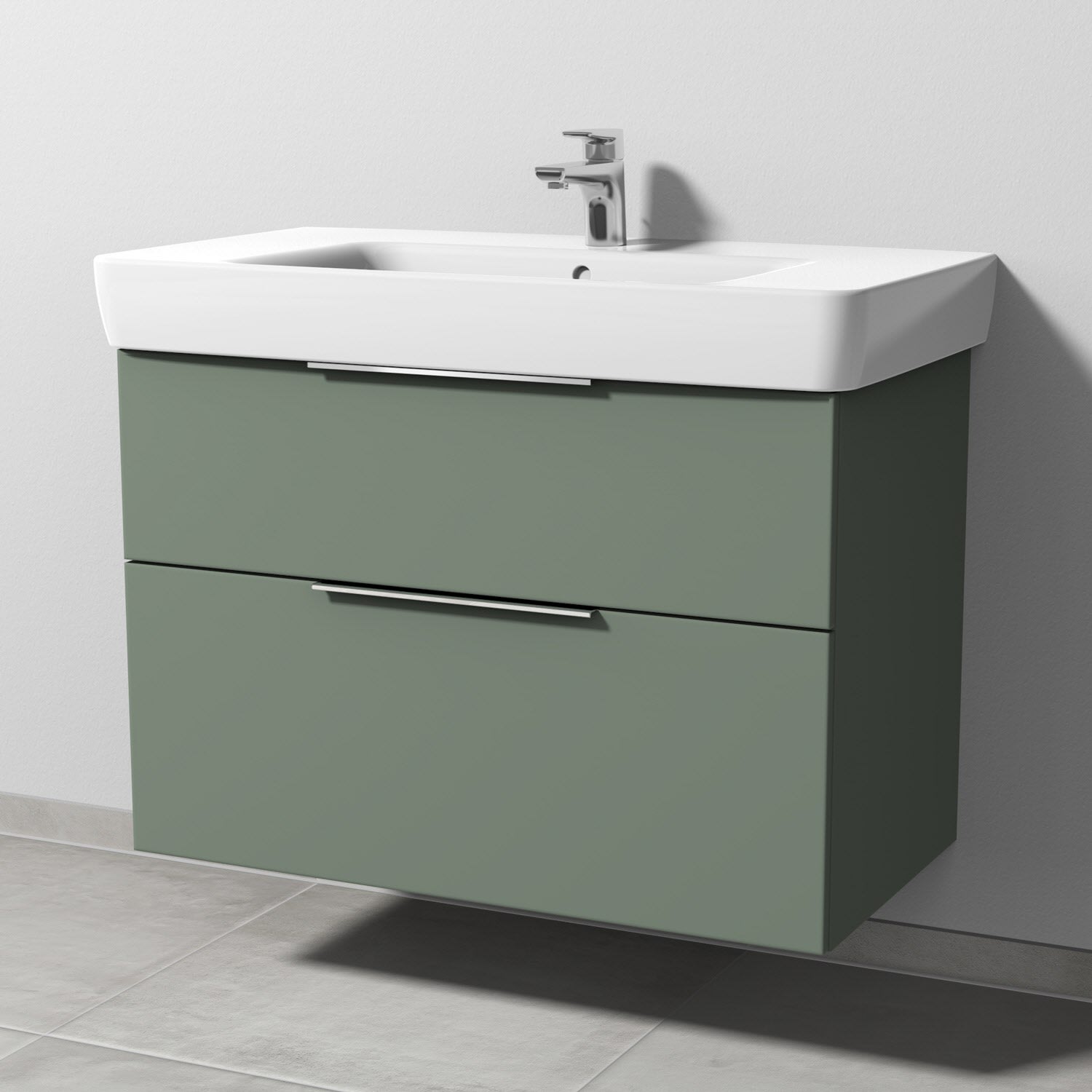 Sanipa 3way Waschtischunterbau für Keramik-Waschtisch Renova Plan 90 cm, 2 Auszüge mit Aufsatzgriff