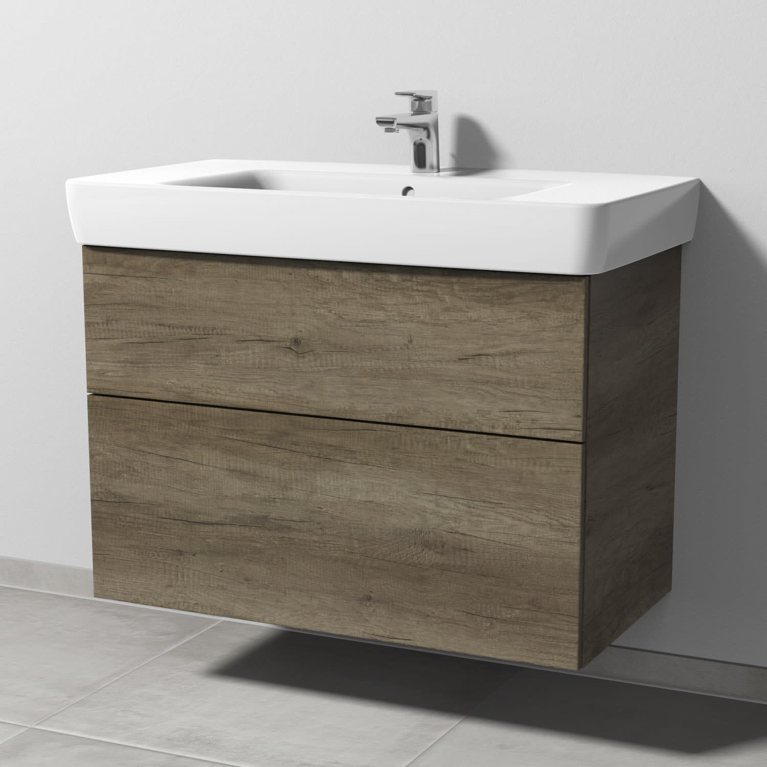 Sanipa 3way Waschtischunterbau für Keramik-Waschtisch Renova Plan 90 cm, 2 Auszüge mit Push to open