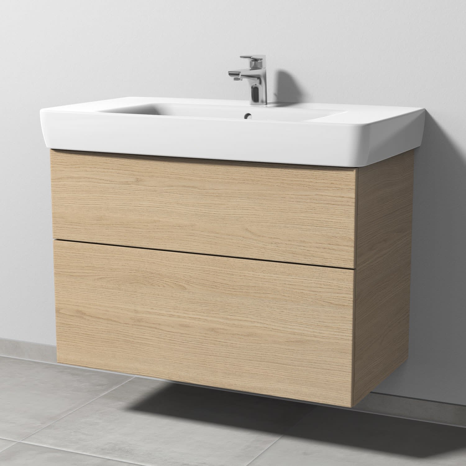 Sanipa 3way Waschtischunterbau für Keramik-Waschtisch Renova Plan 90 cm, 2 Auszüge mit Push to open