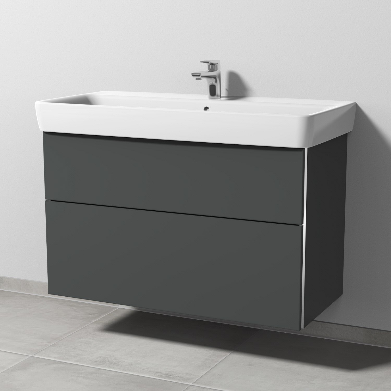 Sanipa 3way Waschtischunterbau für Keramik-Waschtisch Renova Plan 100 cm, 2 Auszüge mit Griffleisten