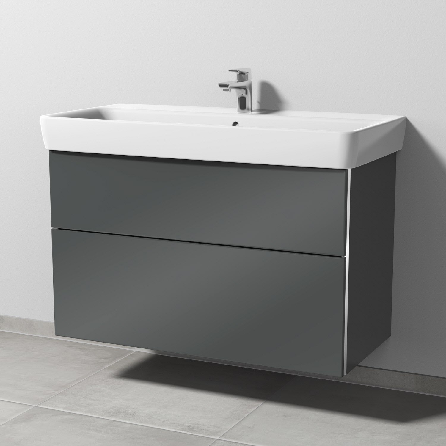 Sanipa 3way Waschtischunterbau für Keramik-Waschtisch Renova Plan 100 cm, 2 Auszüge mit Griffleisten