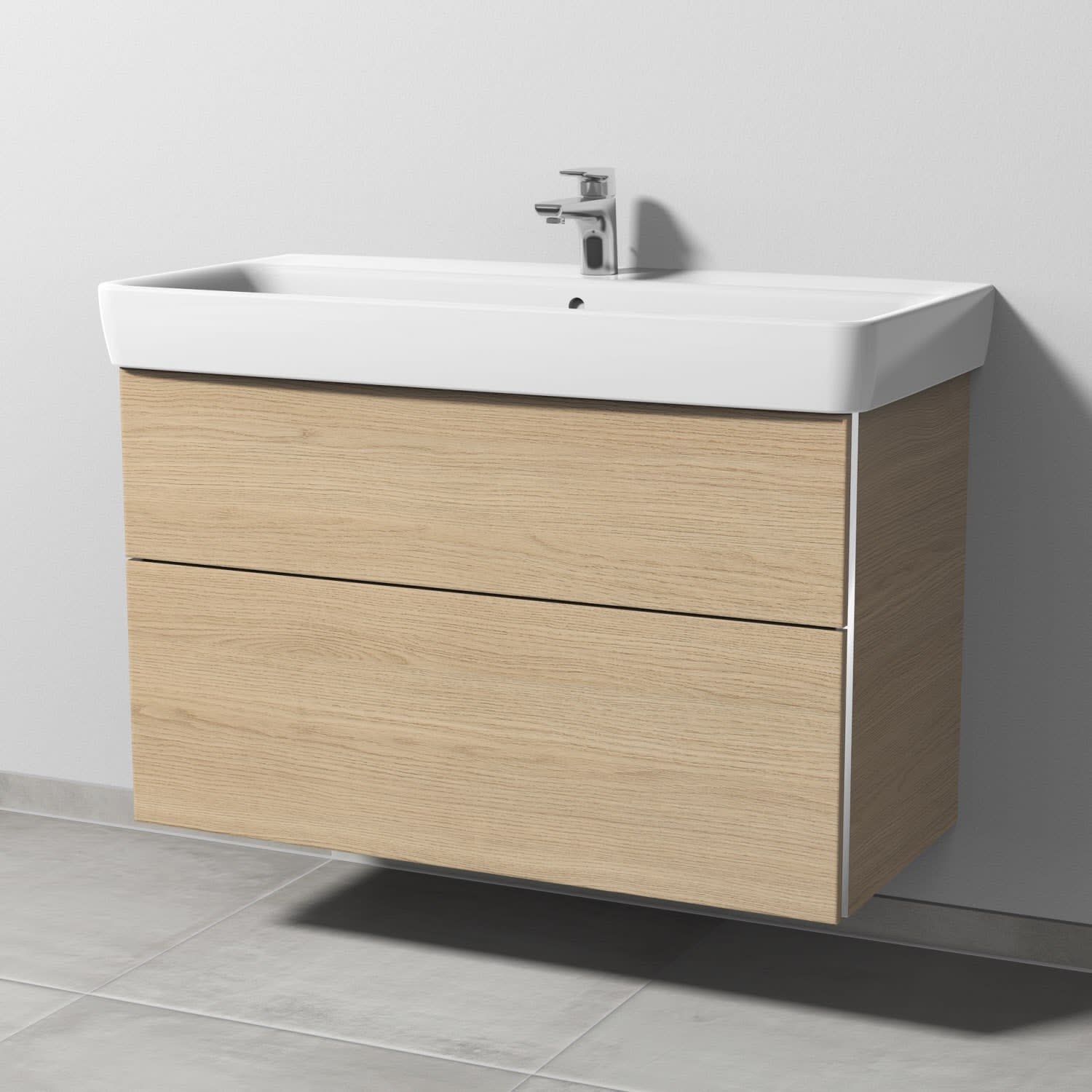 Sanipa 3way Waschtischunterbau für Keramik-Waschtisch Renova Plan 100 cm, 2 Auszüge mit Griffleisten