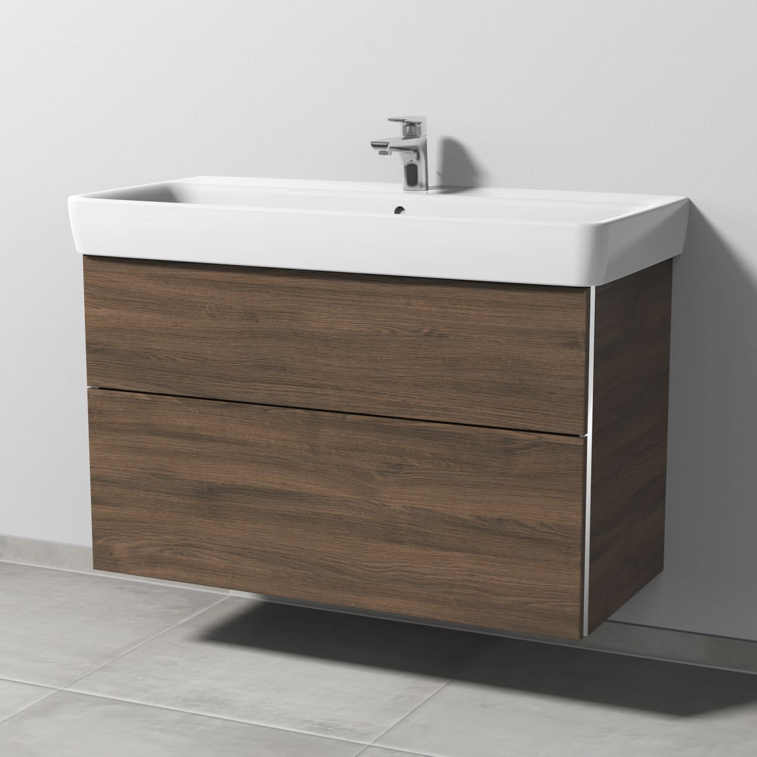 Sanipa 3way Waschtischunterbau für Keramik-Waschtisch Renova Plan 100 cm, 2 Auszüge mit Griffleisten