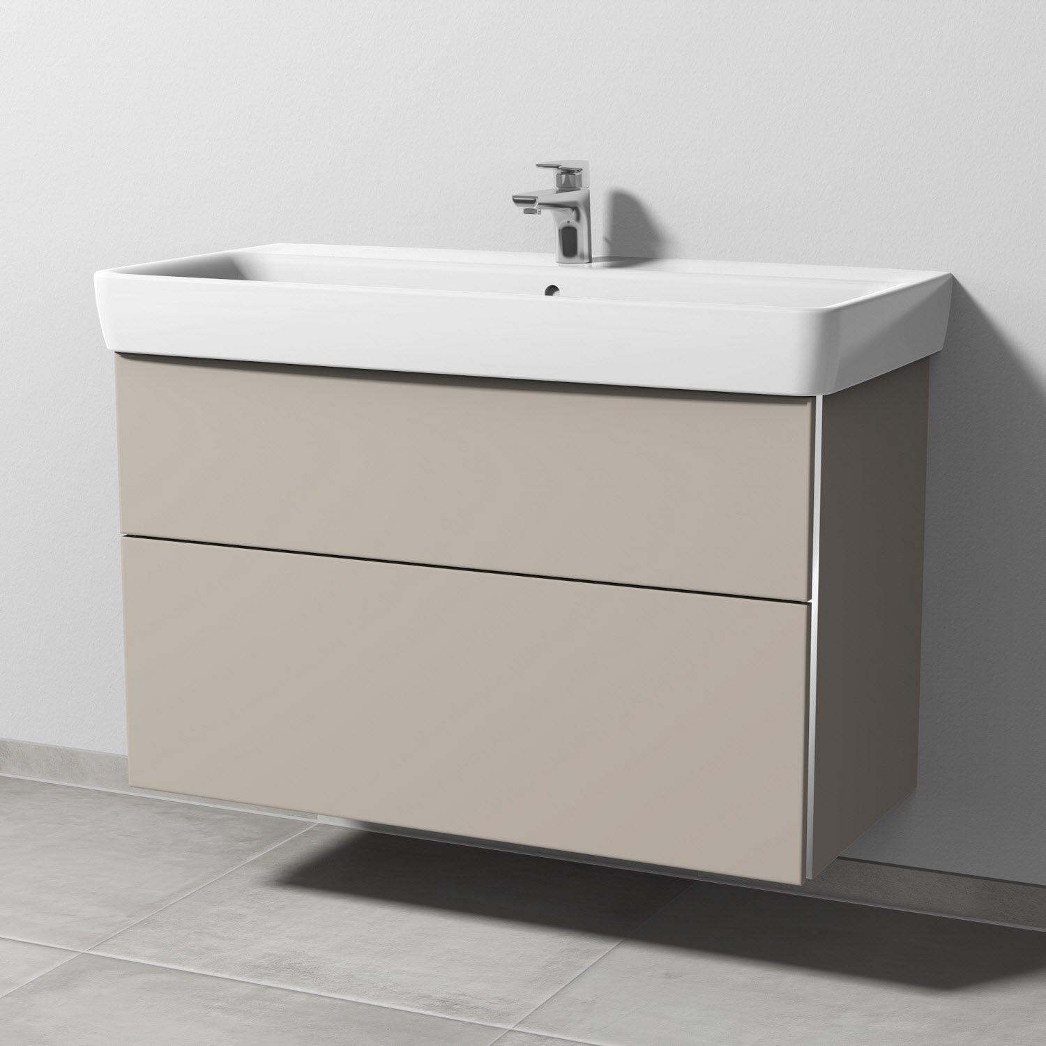 Sanipa 3way Waschtischunterbau für Keramik-Waschtisch Renova Plan 100 cm, 2 Auszüge mit Griffleisten