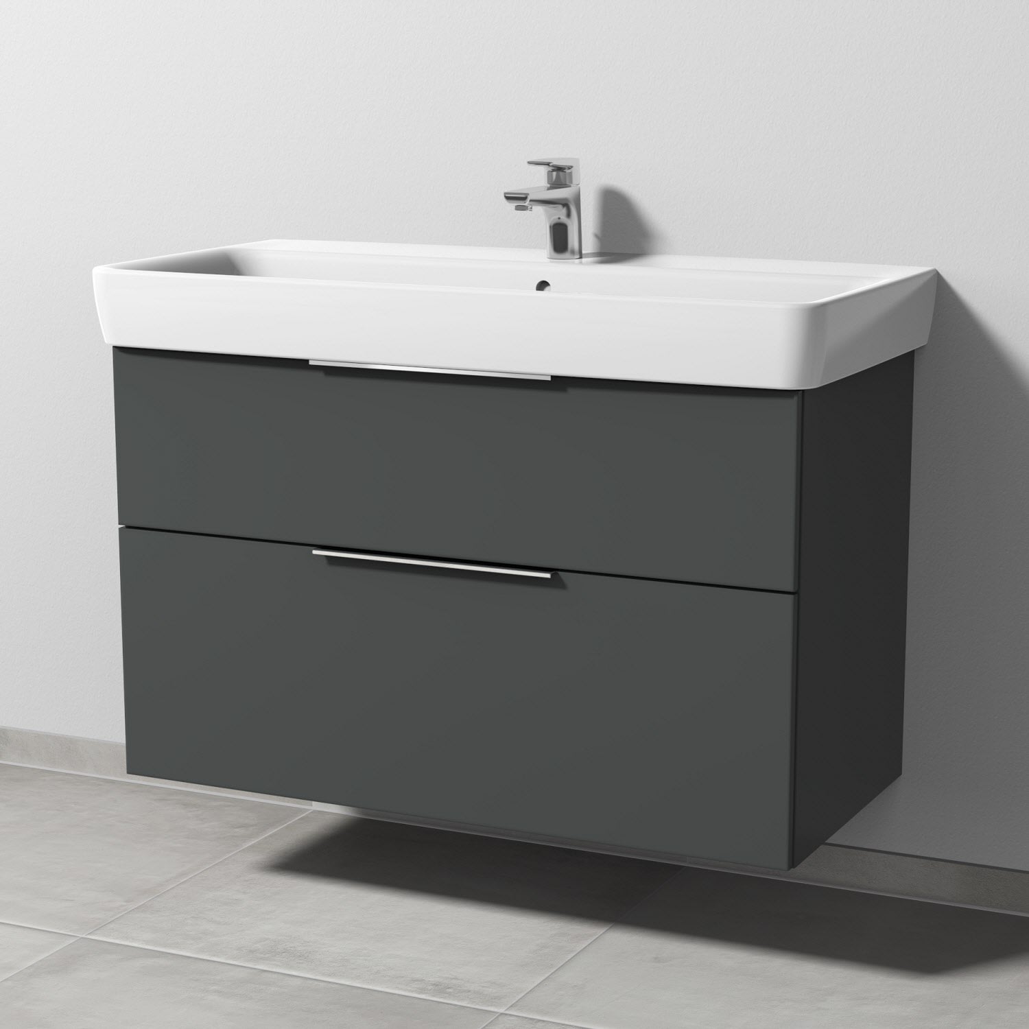 Sanipa 3way Waschtischunterbau für Keramik-Waschtisch Renova Plan 100 cm, 2 Auszüge mit Aufsatzgriff