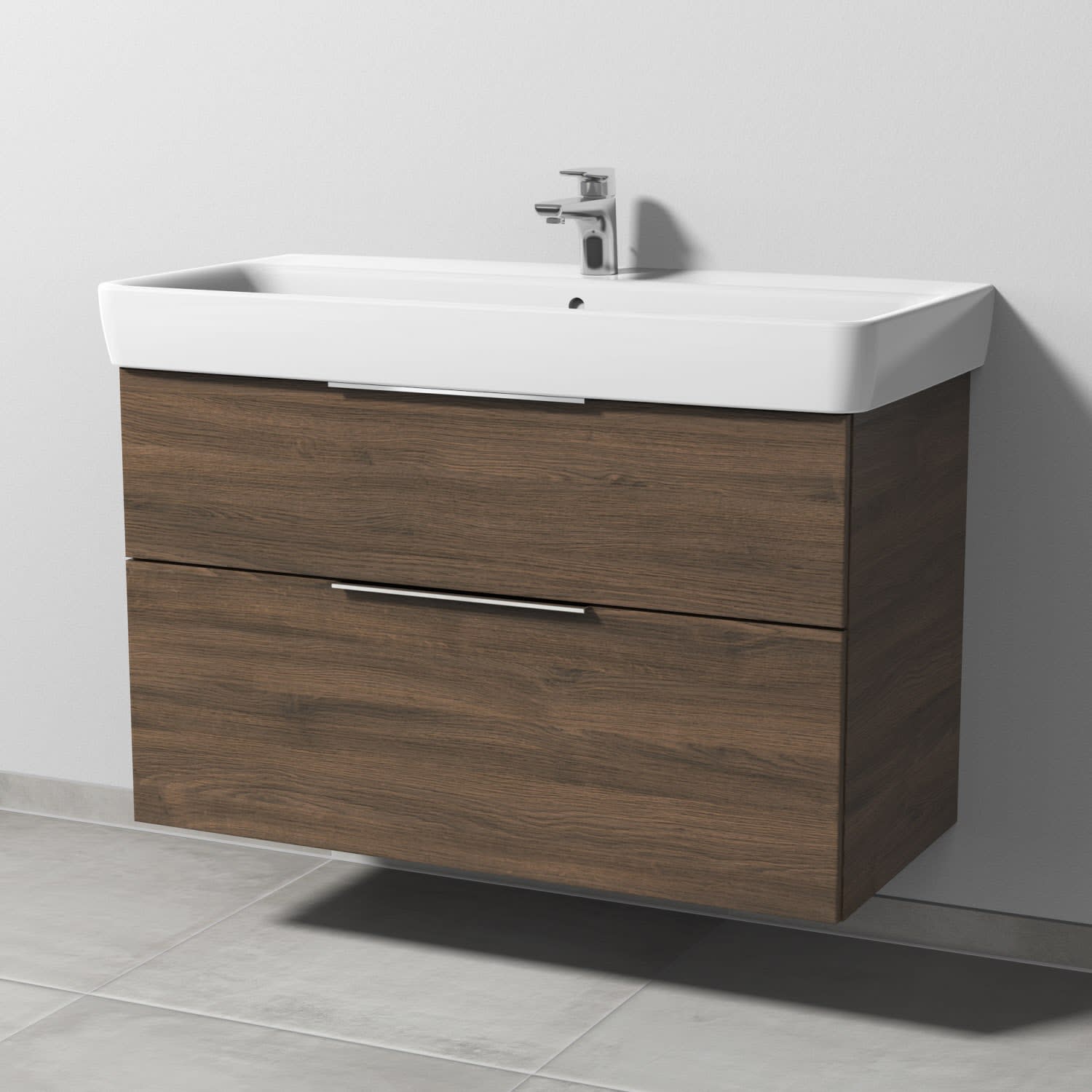Sanipa 3way Waschtischunterbau für Keramik-Waschtisch Renova Plan 100 cm, 2 Auszüge mit Aufsatzgriff