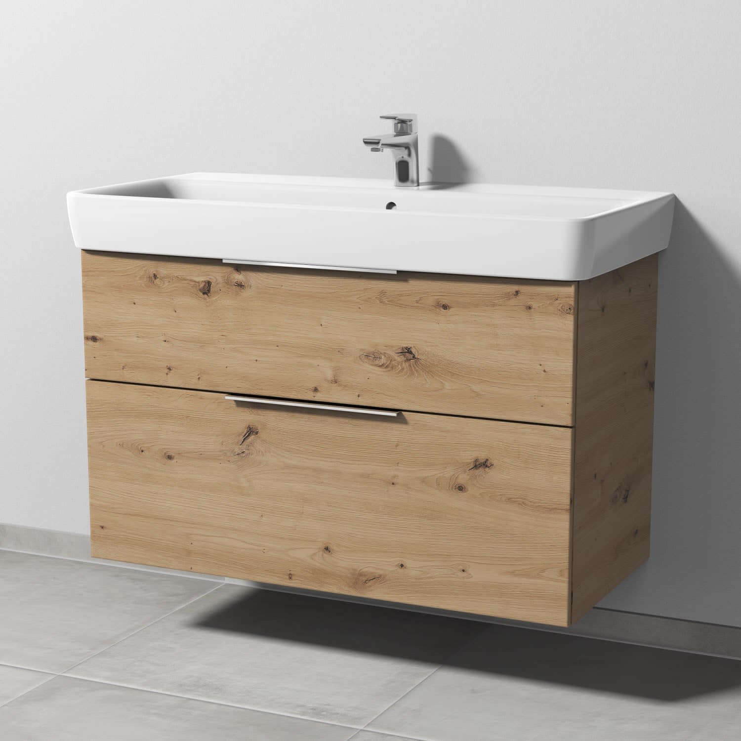 Sanipa 3way Waschtischunterbau für Keramik-Waschtisch Renova Plan 100 cm, 2 Auszüge mit Aufsatzgriff
