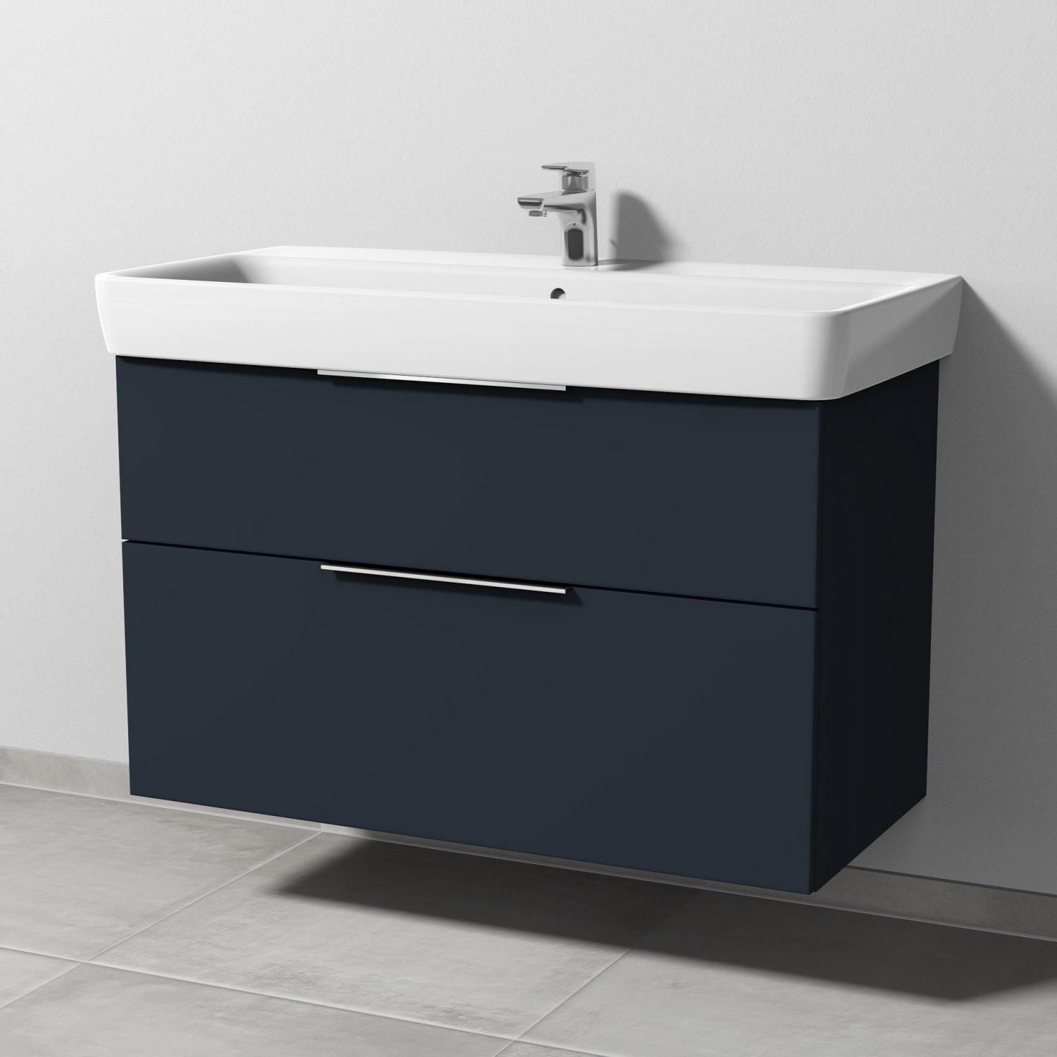 Sanipa 3way Waschtischunterbau für Keramik-Waschtisch Renova Plan 100 cm, 2 Auszüge mit Aufsatzgriff