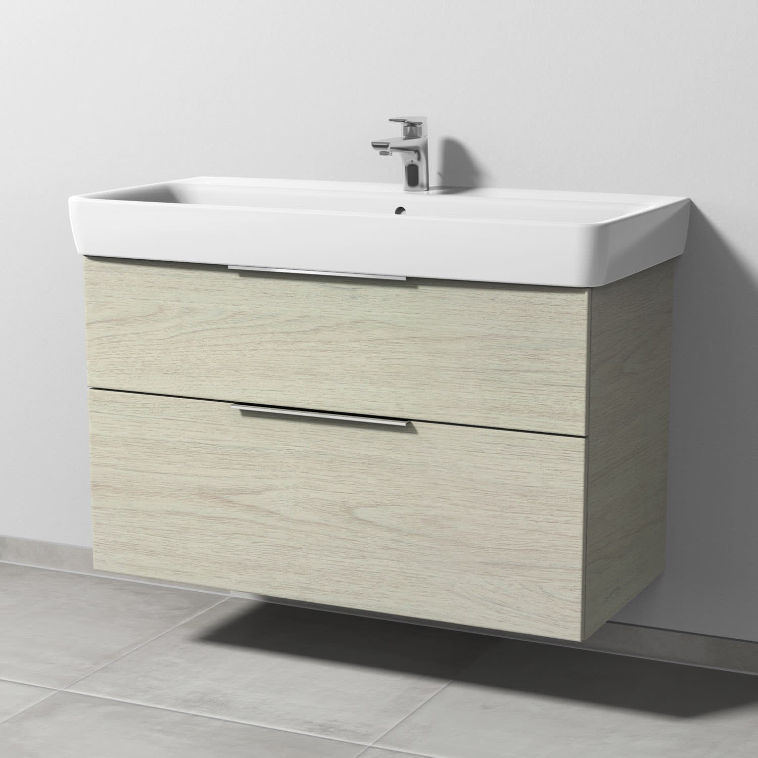 Sanipa 3way Waschtischunterbau für Keramik-Waschtisch Renova Plan 100 cm, 2 Auszüge mit Aufsatzgriff