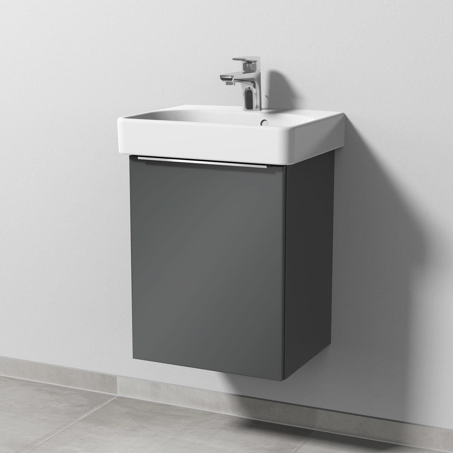 Sanipa 3way Waschtischunterbau für Keramik-Waschtisch Smyle Square 45 cm, 1 Tür, Anschlag links, mit Aufsatzgriff