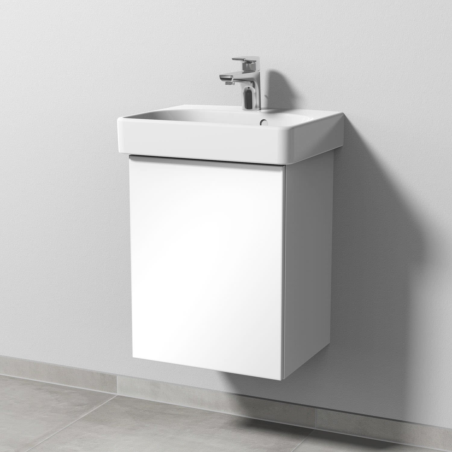 Sanipa 3way Waschtischunterbau für Keramik-Waschtisch Smyle Square 45 cm, 1 Tür, Anschlag links, mit Push to open