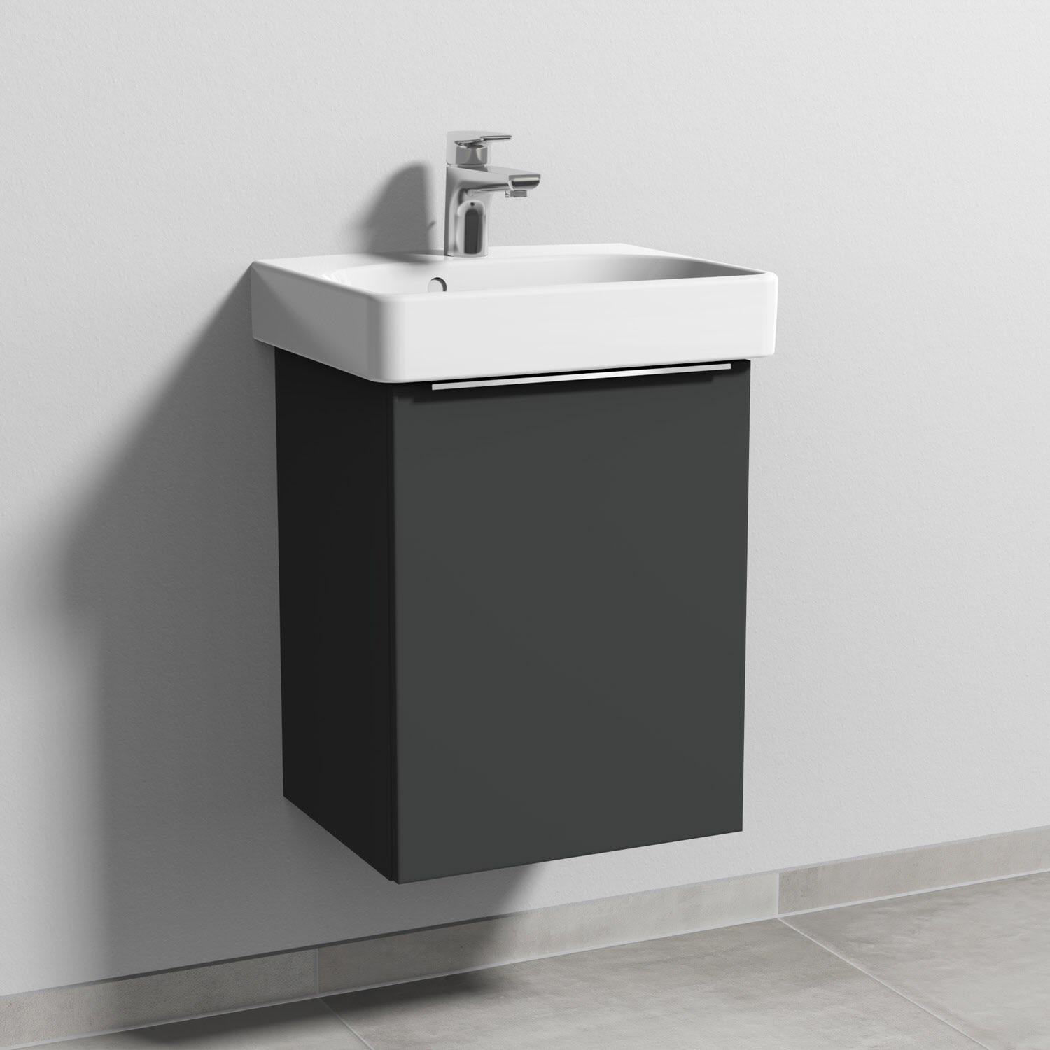 Sanipa 3way Waschtischunterbau für Keramik-Waschtisch Smyle Square 45 cm, 1 Tür, Anschlag rechts, mit Aufsatzgriff