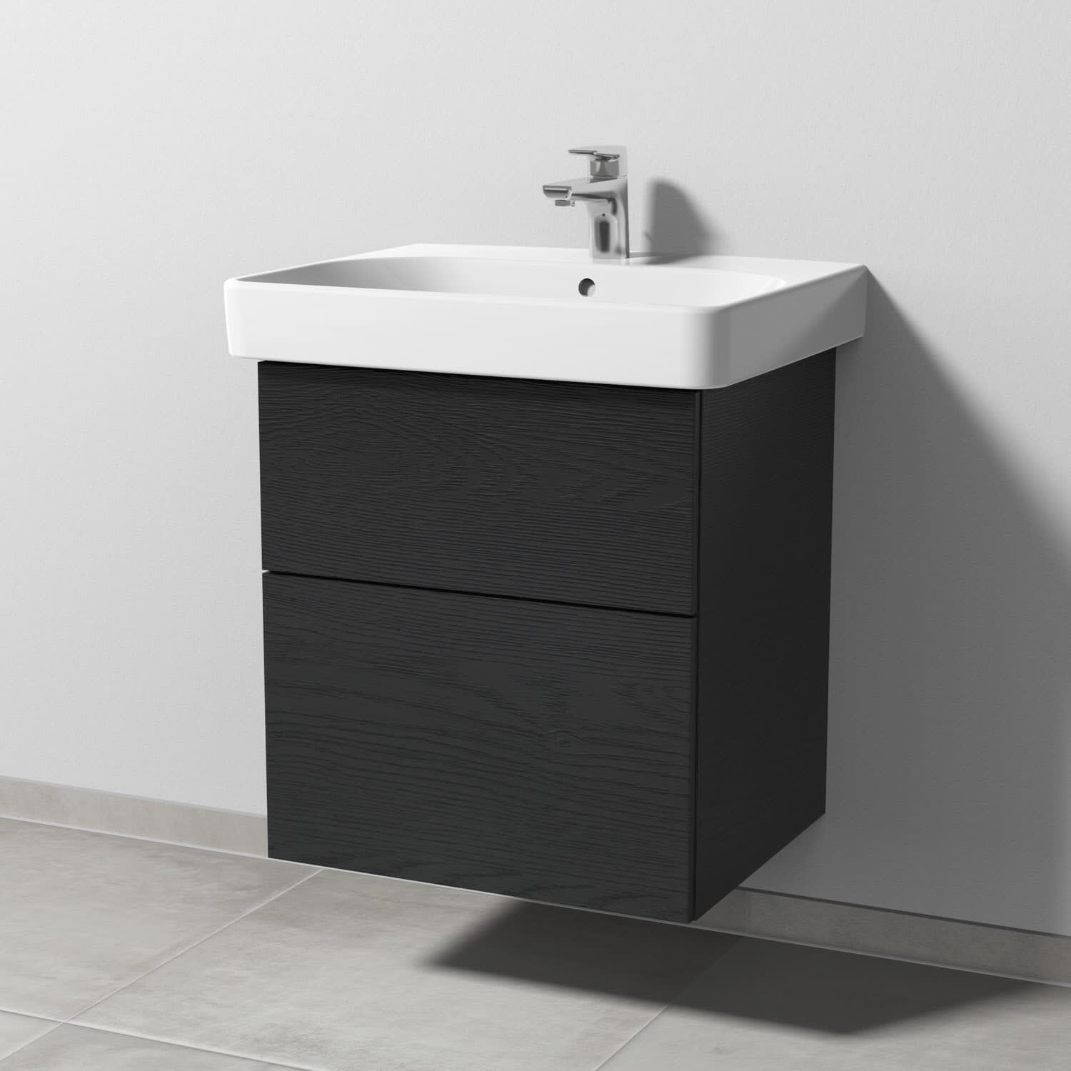 Sanipa 3way Waschtischunterbau für Keramik-Waschtisch Smyle Square 60 cm, 2 Auszüge mit Push to open
