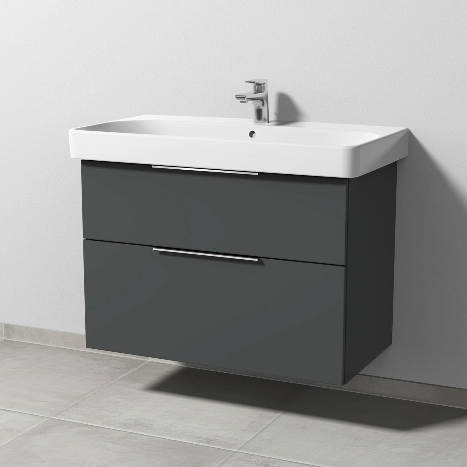 Sanipa 3way Waschtischunterbau für Keramik-Waschtisch Smyle Square 90 cm, 2 Auszüge mit Aufsatzgriff