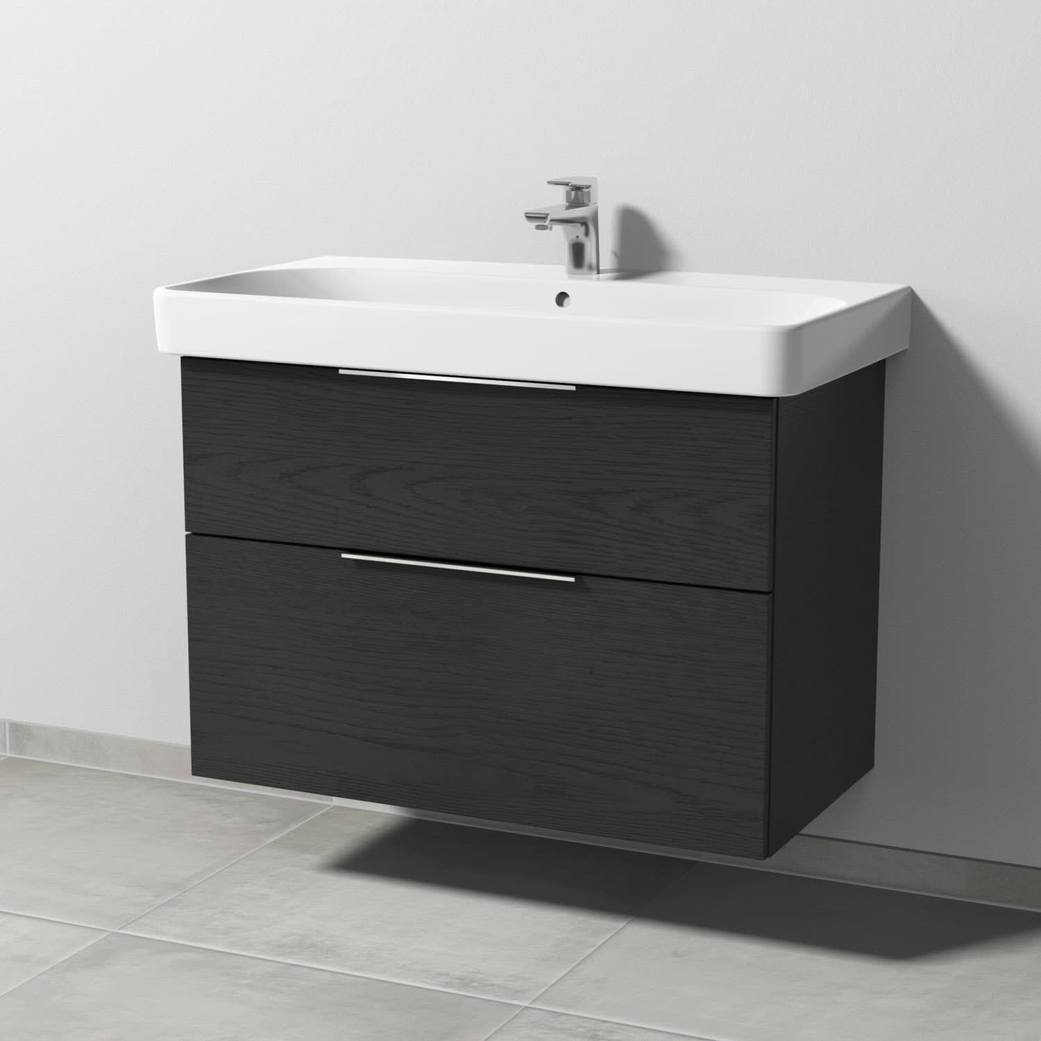 Sanipa 3way Waschtischunterbau für Keramik-Waschtisch Smyle Square 90 cm, 2 Auszüge mit Aufsatzgriff