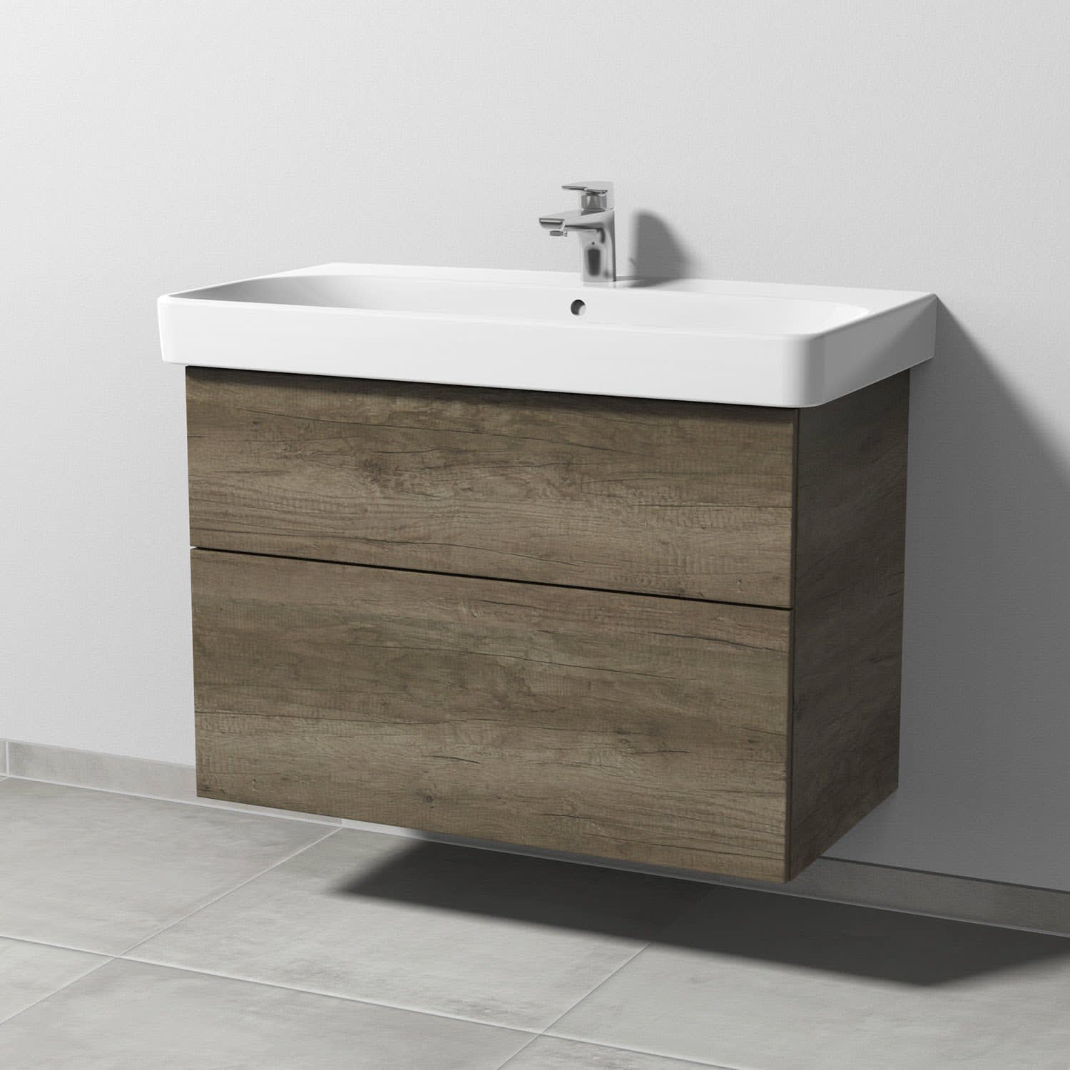 Sanipa 3way Waschtischunterbau für Keramik-Waschtisch Smyle Square 90 cm, 2 Auszüge mit Push to open