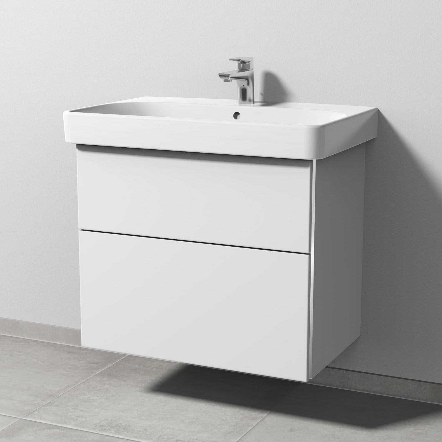Sanipa 3way Waschtischunterbau für Keramik-Waschtisch Smyle Square 75 cm, 2 Auszüge mit Griffleisten