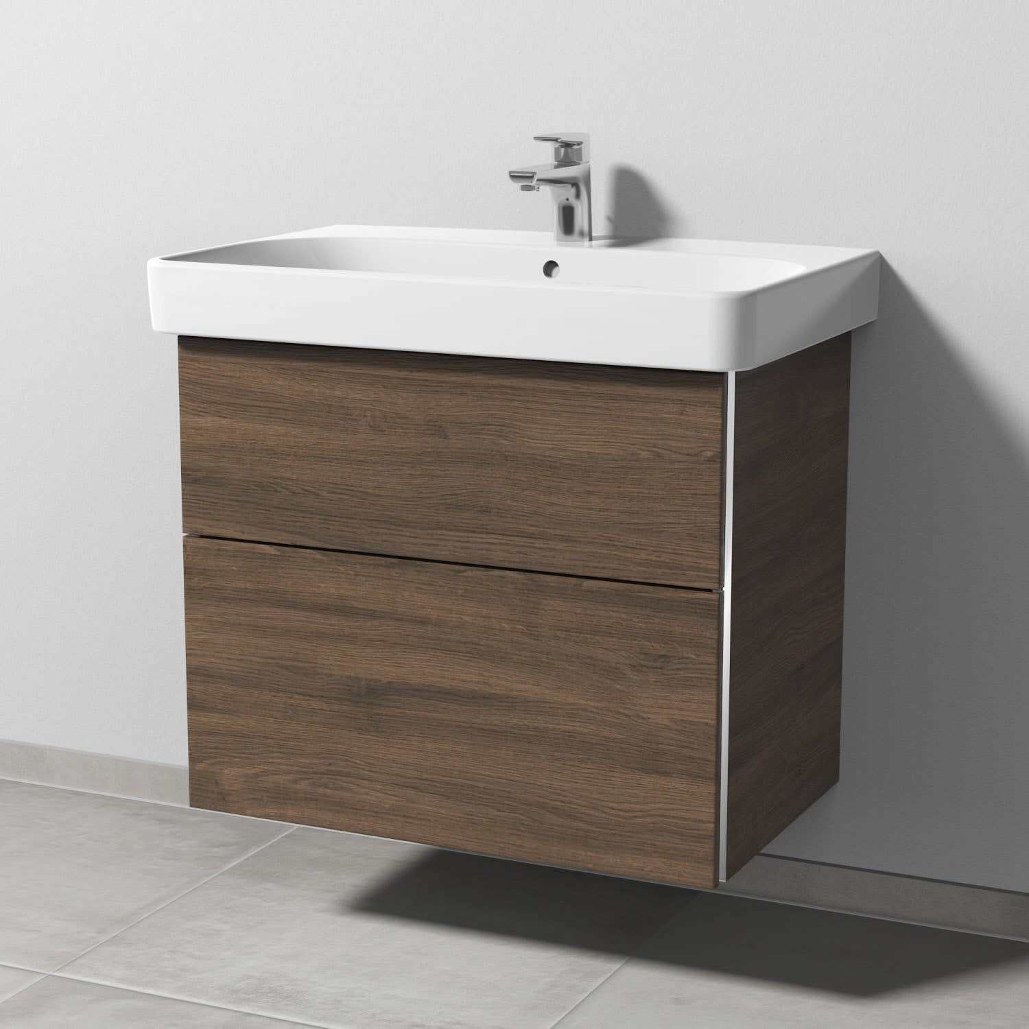 Sanipa 3way Waschtischunterbau für Keramik-Waschtisch Smyle Square 75 cm, 2 Auszüge mit Griffleisten