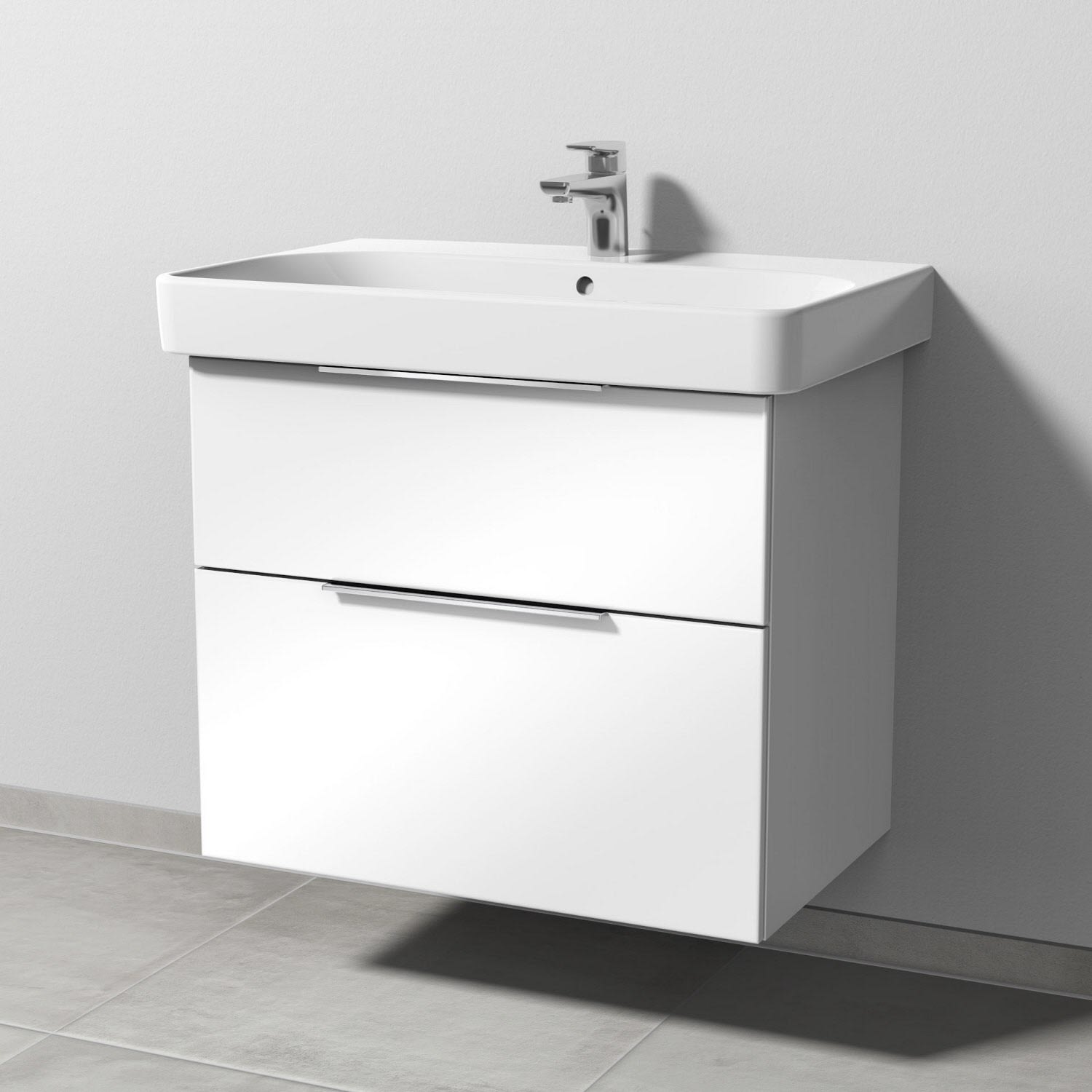 Sanipa 3way Waschtischunterbau für Keramik-Waschtisch Smyle Square 75 cm, 2 Auszüge mit Aufsatzgriff
