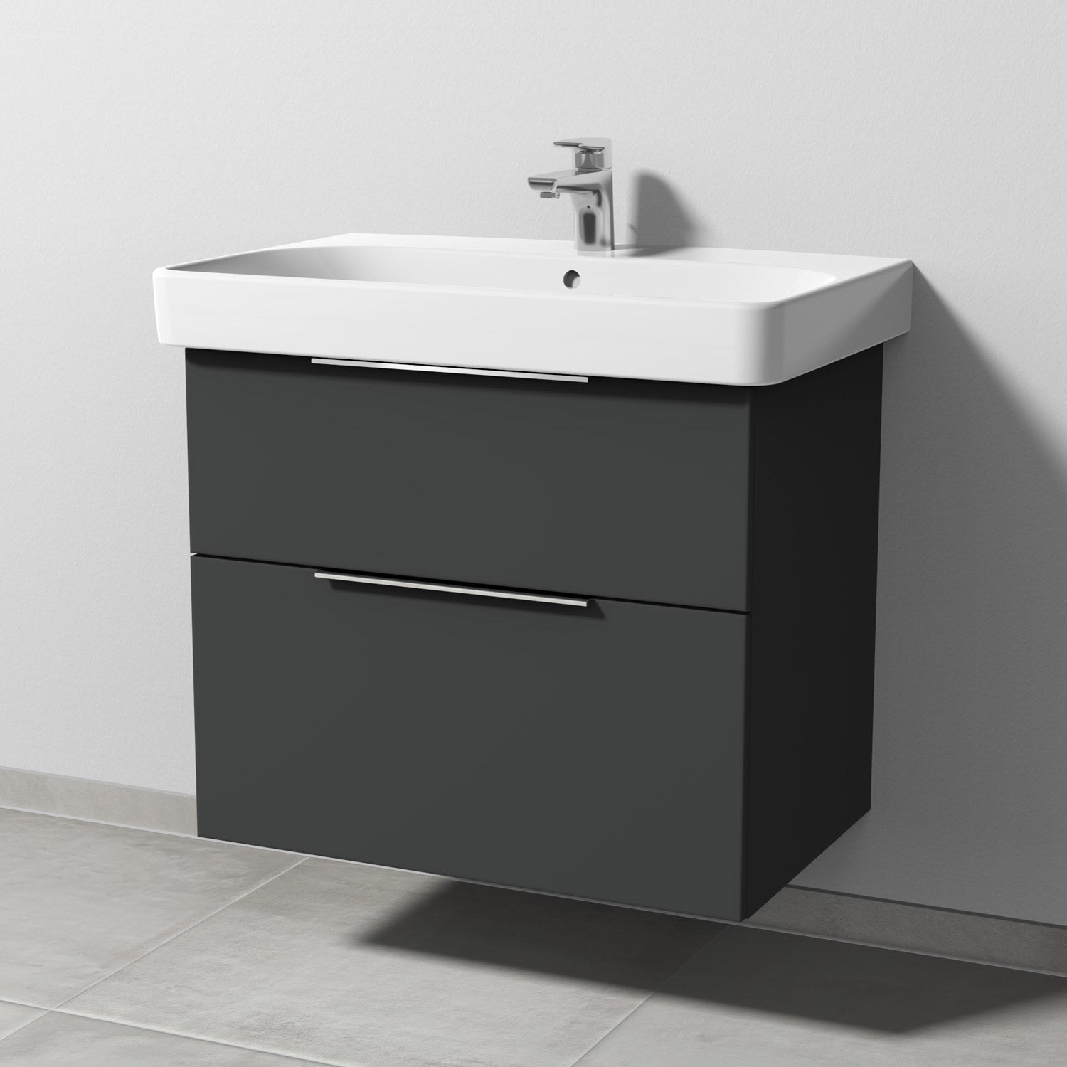 Sanipa 3way Waschtischunterbau für Keramik-Waschtisch Smyle Square 75 cm, 2 Auszüge mit Aufsatzgriff